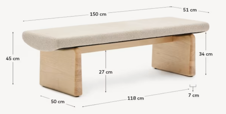 The structure made of solid beech wood with a natural finish highlights the timeless character of the bench and ensures the durability of the construction. The medium-sized seat offers comfort for everyday use, while the subtle finishing details add elegance to the whole. The Topaz bench is designed in the spirit of responsible design – made from FSC™ 100% certified materials and environmentally friendly fabric, perfect for the hallway, bedroom, or relaxation area.
