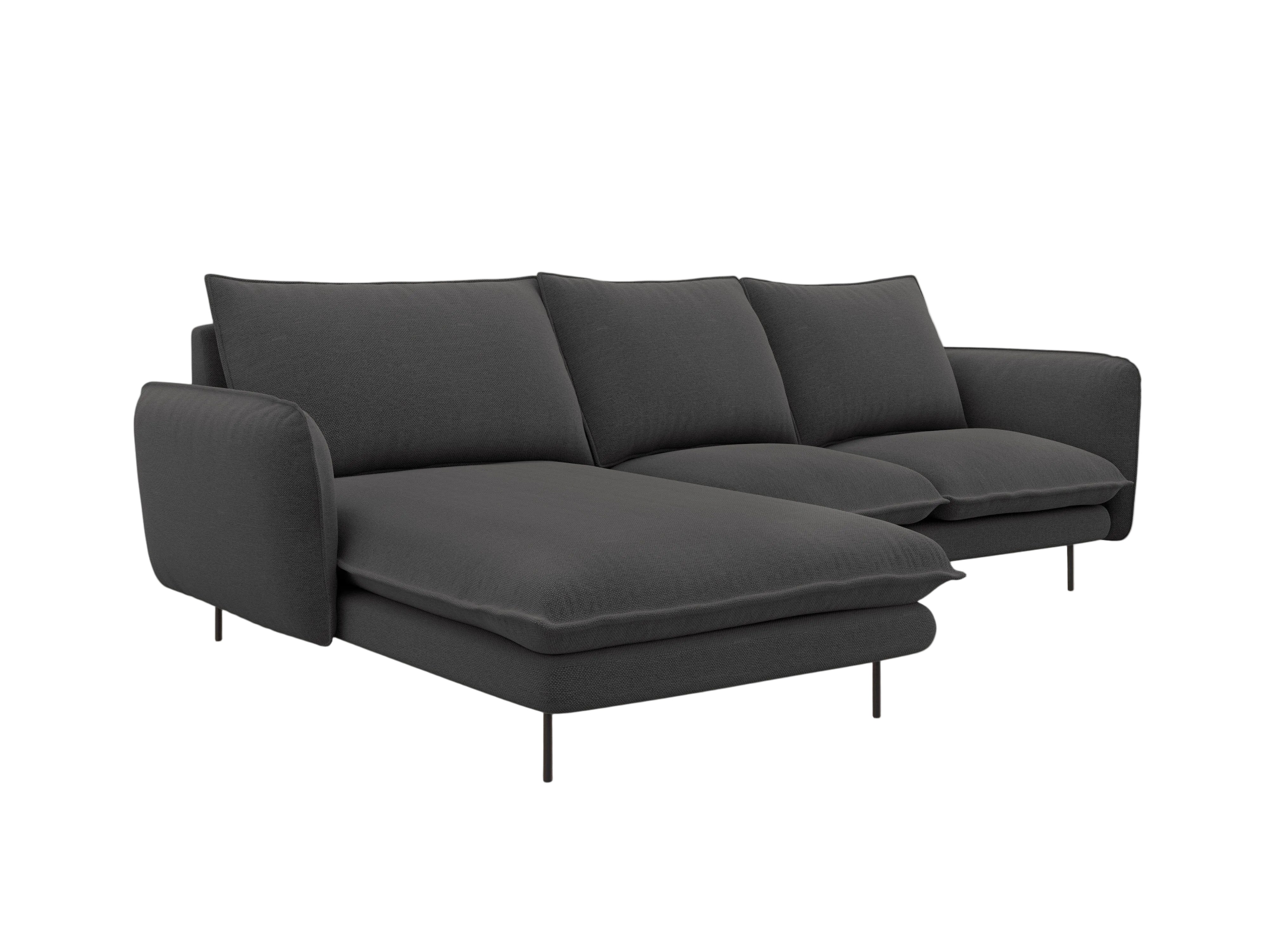 Left-facing corner sofa for 5 people VIENNA dark gray chenille with black base
