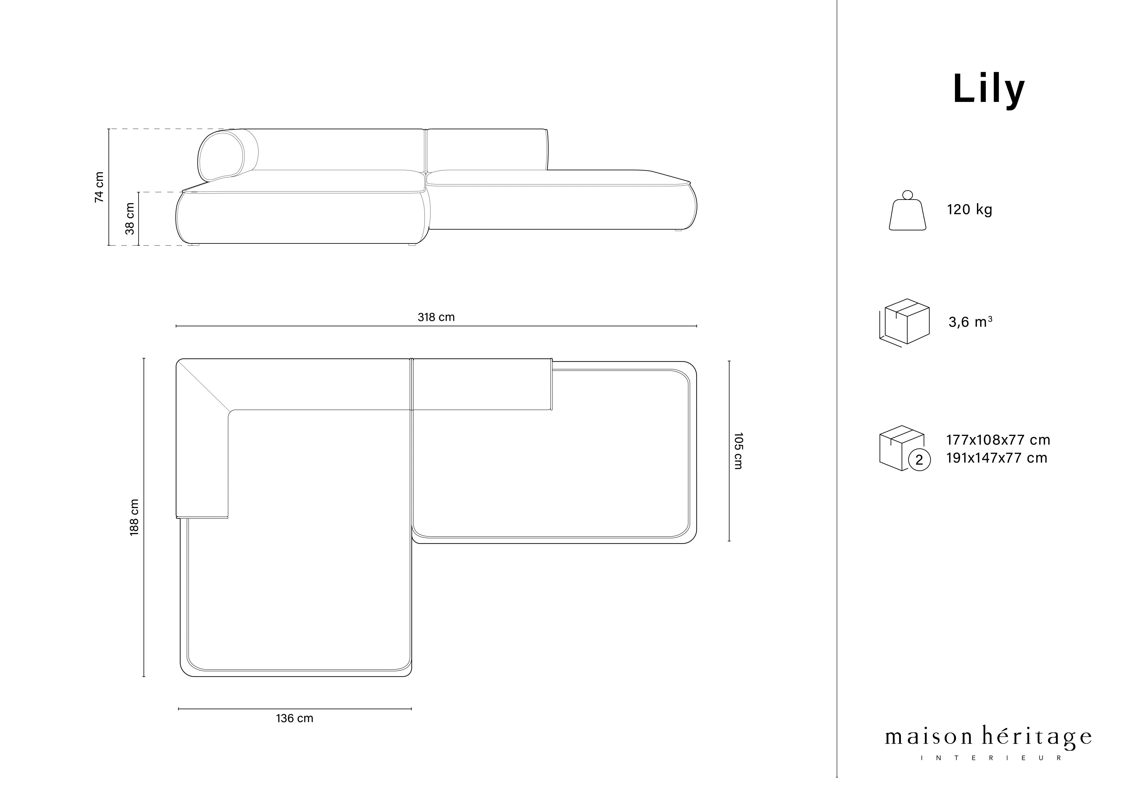 Leather corner sofa for four people Lily adds a touch of timeless elegance to any interior. Its unique form is a result of a modern approach to classic leather furniture. The rounded edges of the seats have an exceptionally original shape, while the stylish backs provide the right comfort for relaxation.