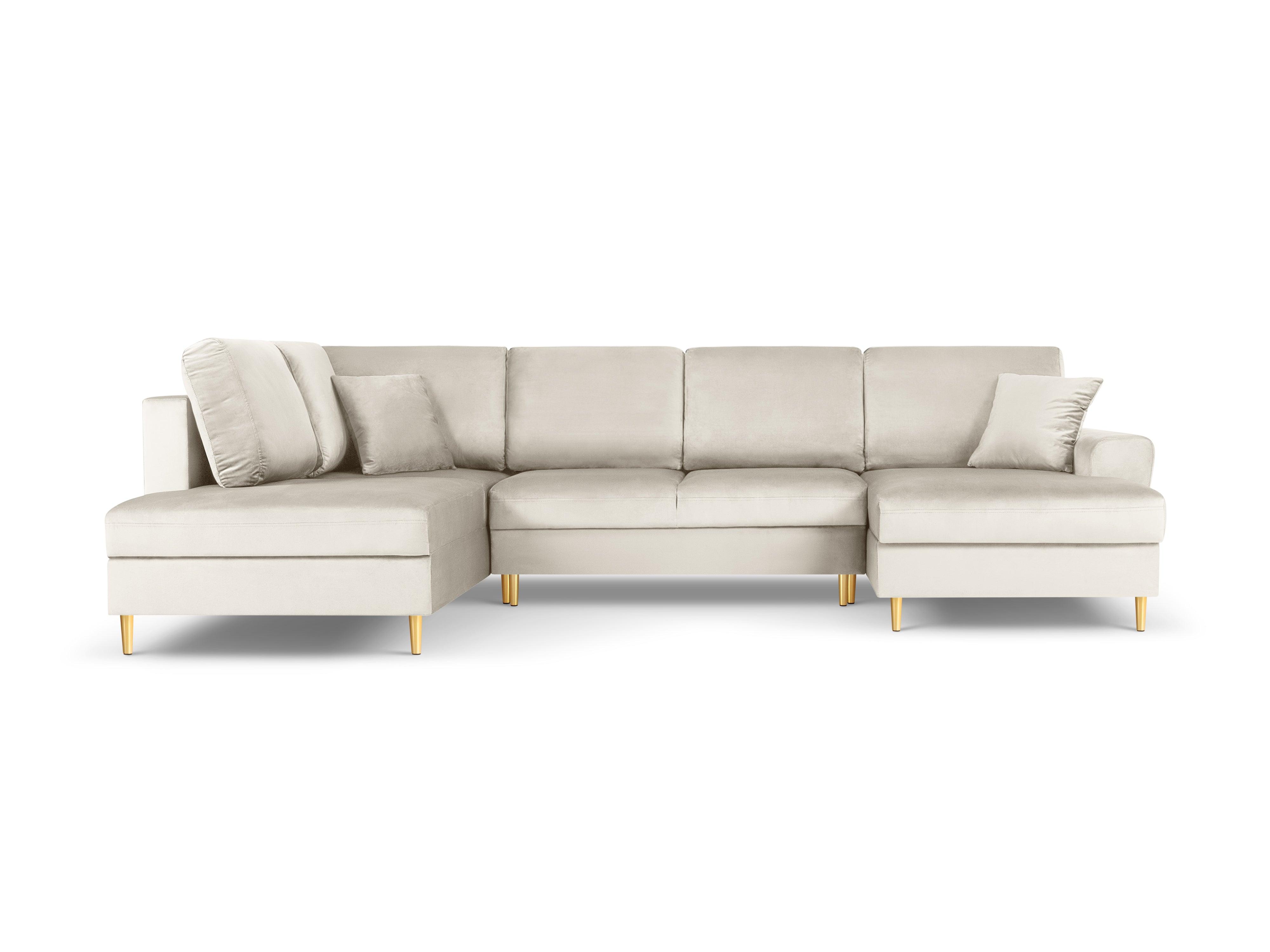Narożnik lewostronny aksamitny panoramiczny z funkcją spania KYOTO beżowy ze złotą podstawą Cosmopolitan Design    Eye on Design