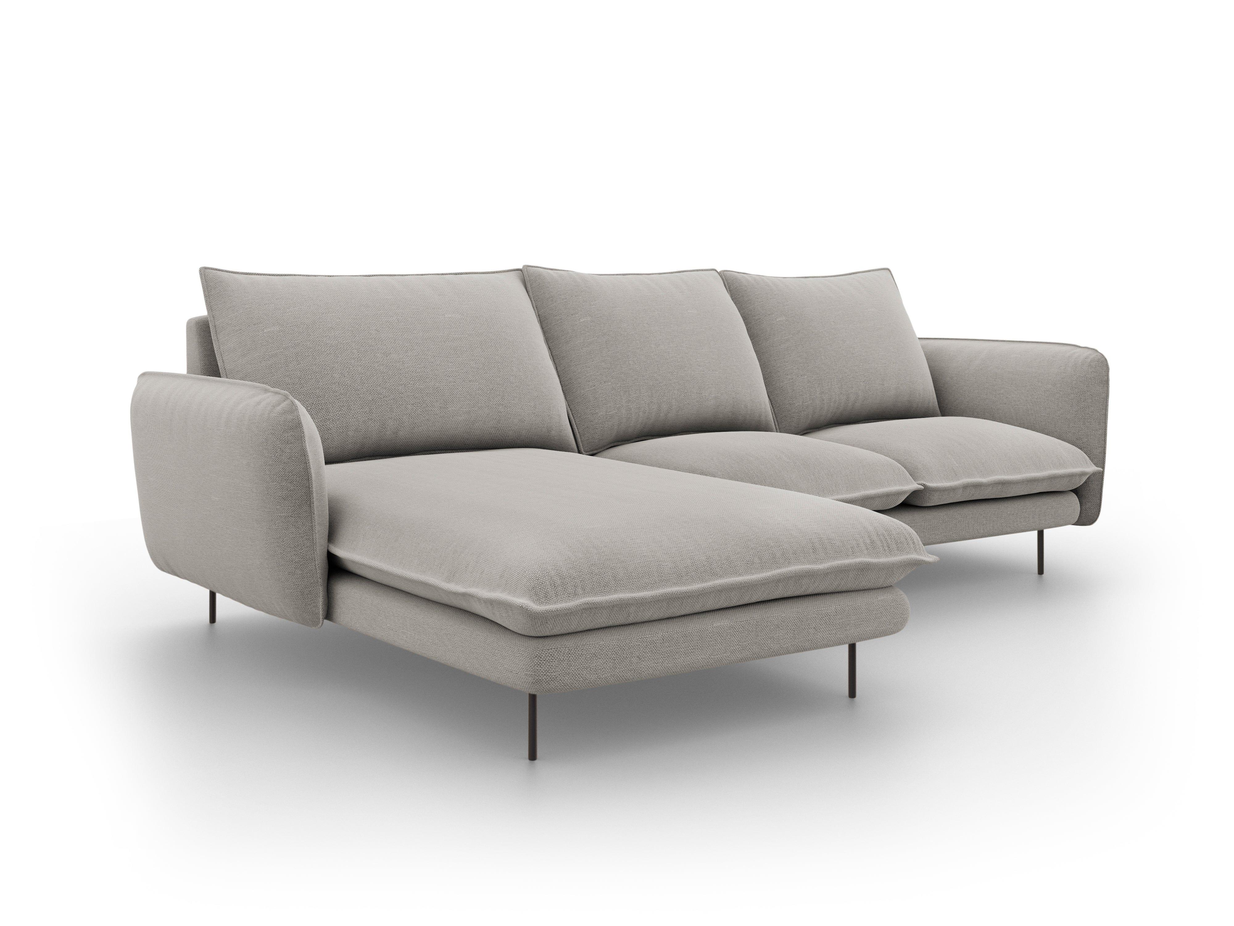 Left-facing corner sofa for 5 people VIENNA light gray chenille with black base
