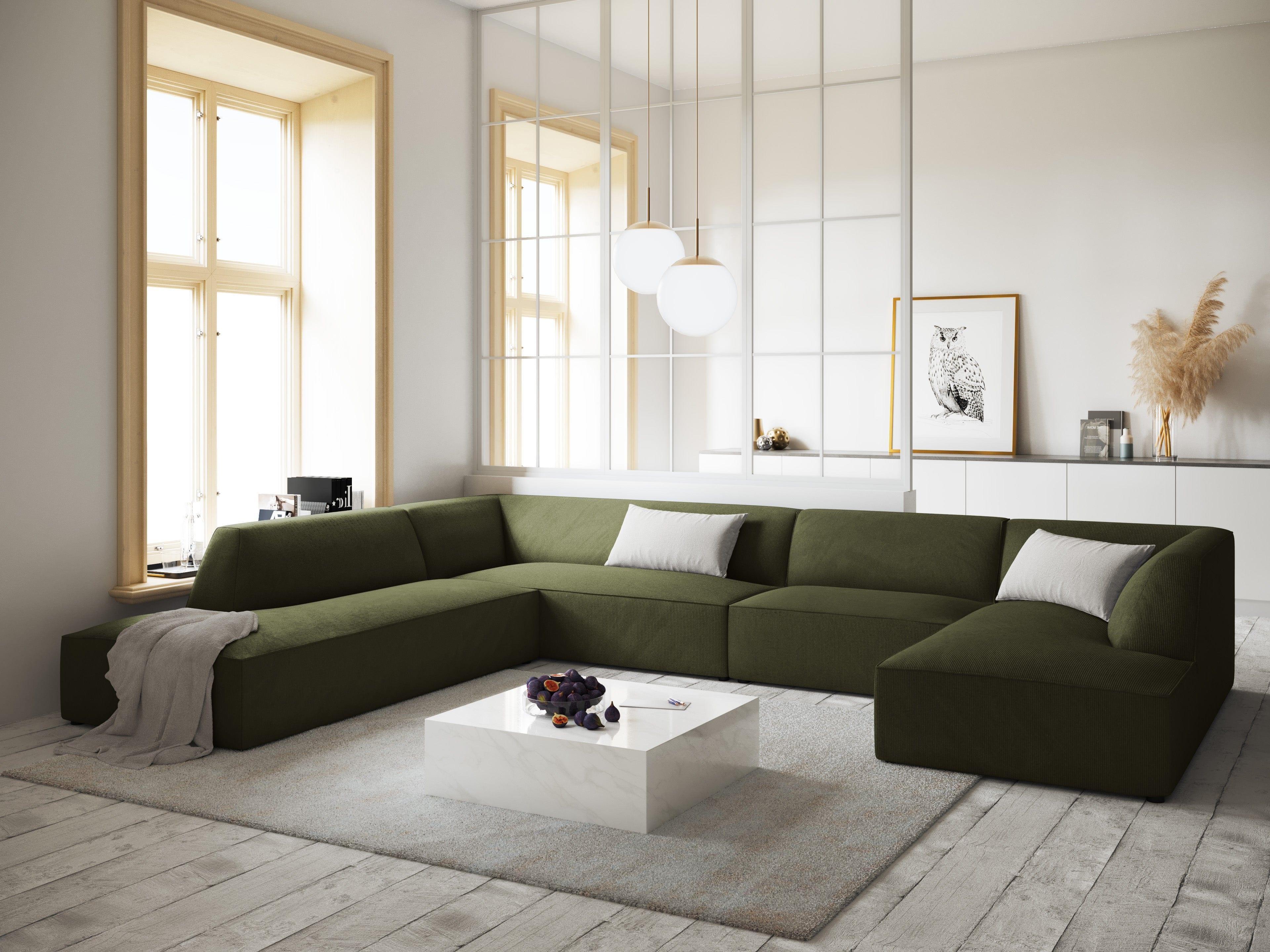 Narożnik w kształcie U sztruksowa lewostronny RUBY zielony Micadoni    Eye on Design
