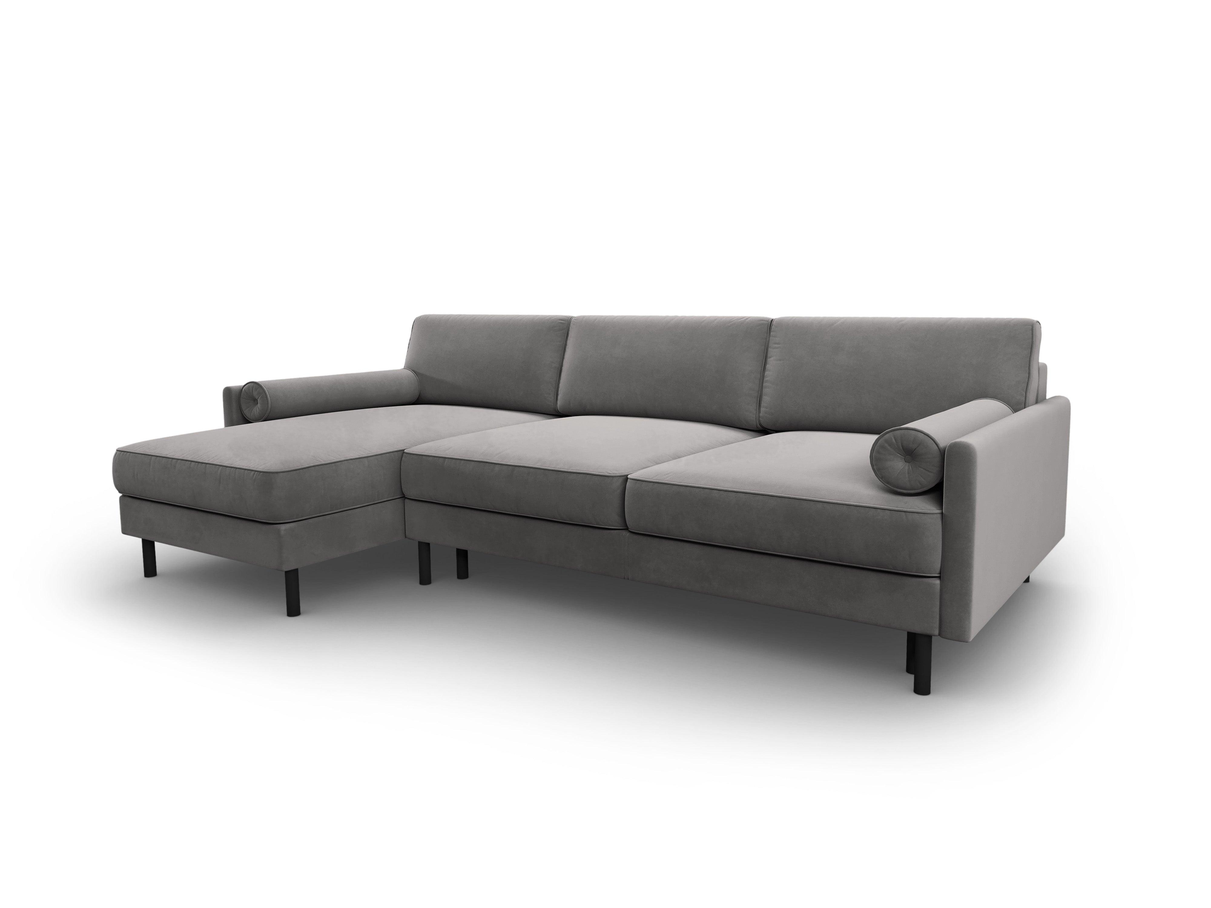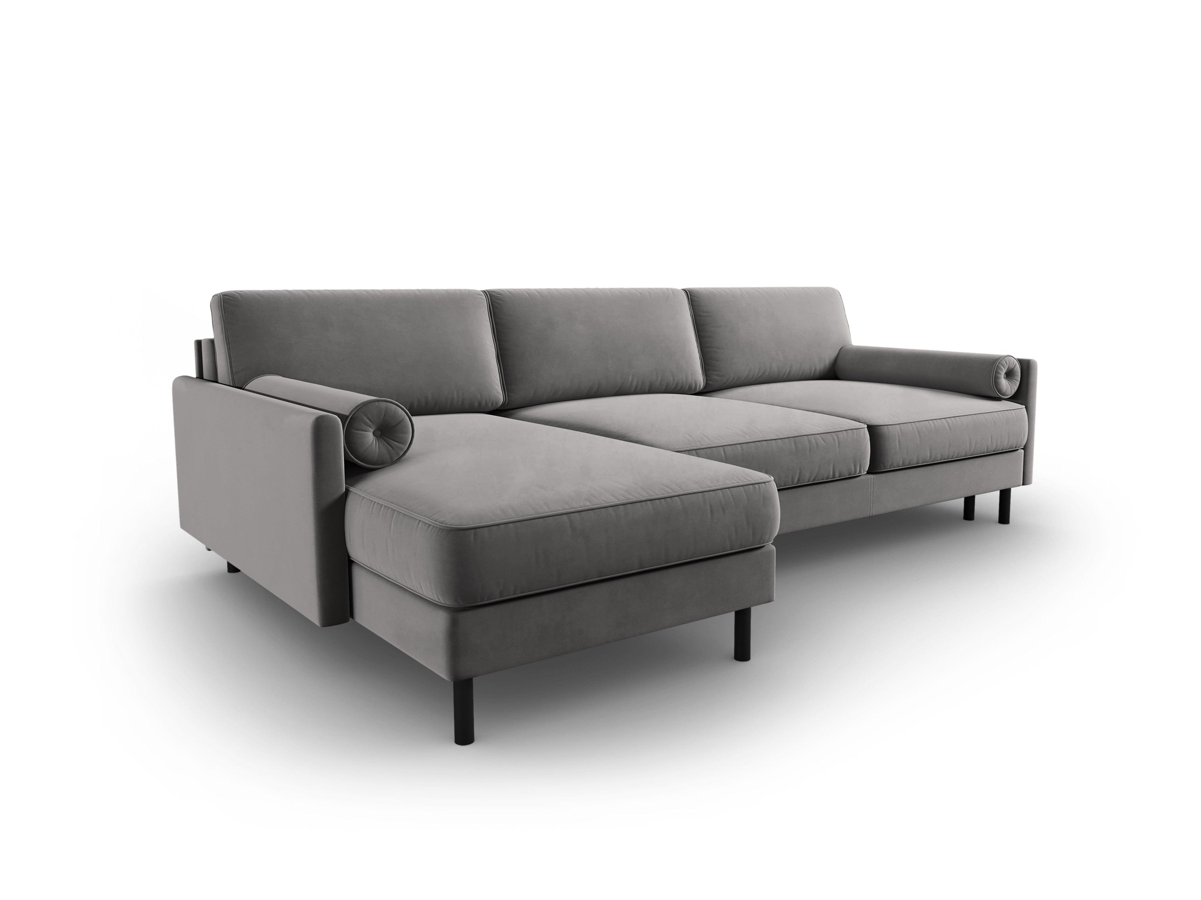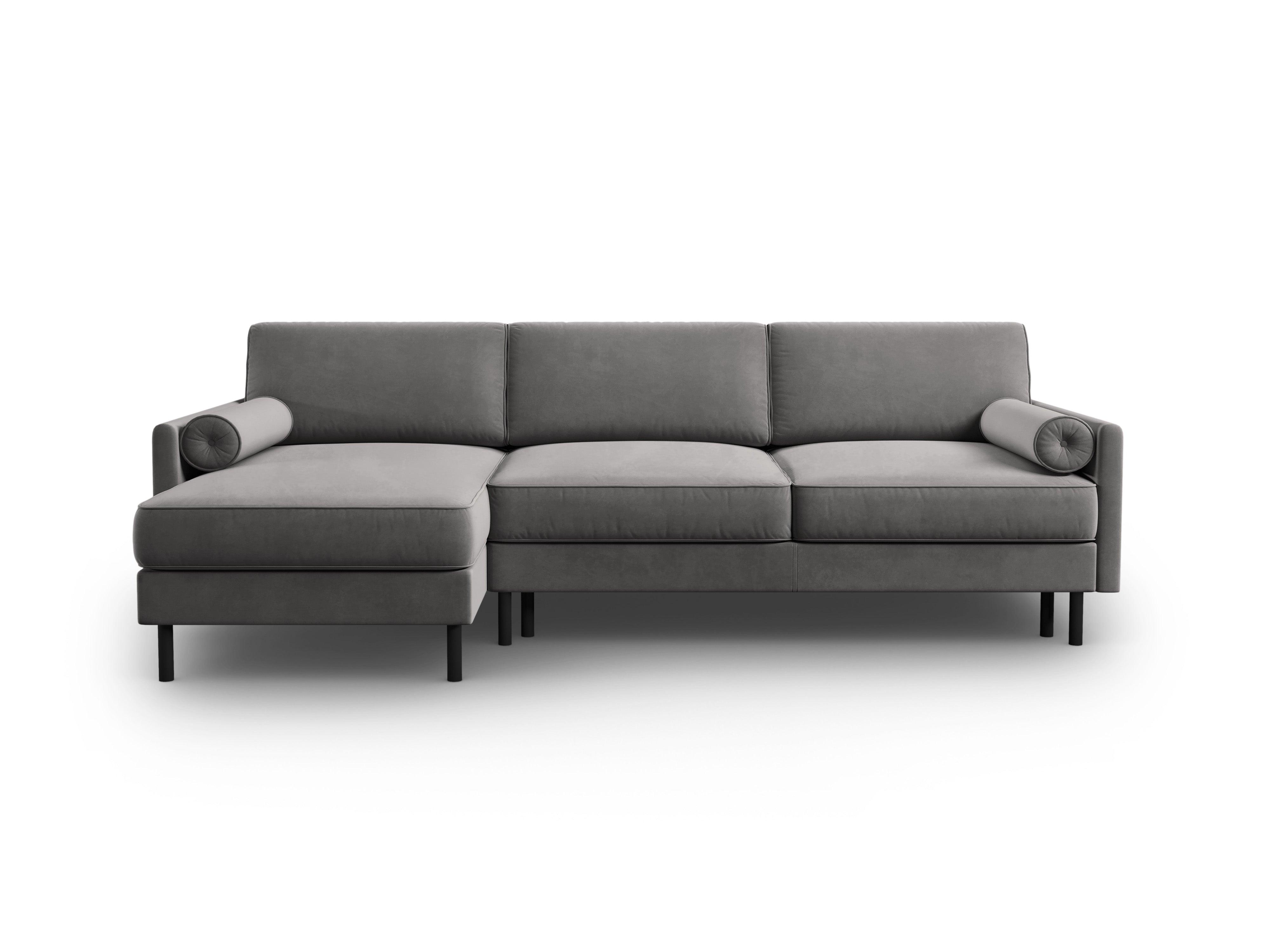 Narożnik aksamitny lewostronny z funkcją spania SCOTT jasnoszary Micadoni    Eye on Design