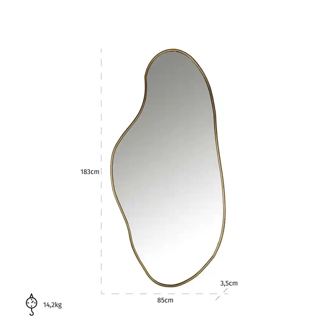 Modern mirror Alton in an irregular shape, which serves as a design accent for any interior. The delicate frame in a brushed gold shade emphasizes the artistic character of the whole and adds elegance. This is a unique decor element that will fit perfectly into spaces maintained in modern, glamour, or loft styles.