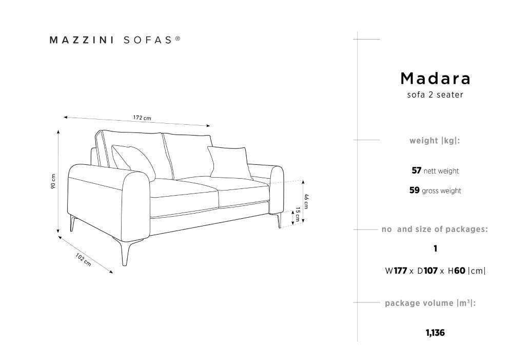 Sofa aksamitna 2-osobowa MADARA cappuccino ze złotą podstawą Mazzini Sofas    Eye on Design