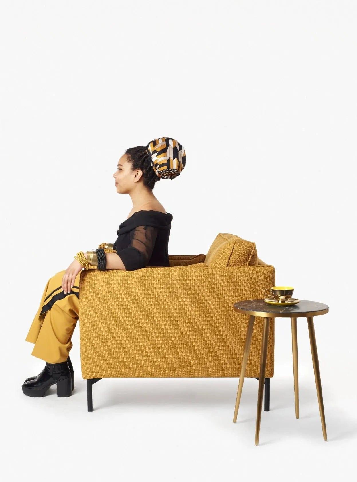 The combination of black and classic gold adds a chic appearance to the table, while its relatively small size makes it table this will fit into almost any space. MThe armchair color gives the surface a perfect look, while the stainless steel frame in brushed gold makes the table solid and durable.