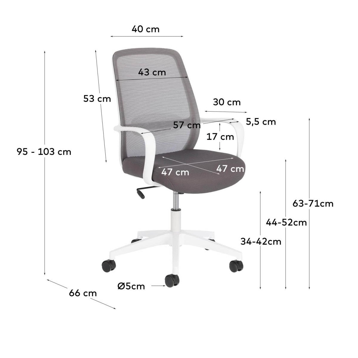 Desk chair Melva is an irreplaceable work companion that increases the comfort and effectiveness of your daily routine. Thanks to the adjustable height and rotating seat, gray chair with a white base Melva not only provides an ergonomic adaptation to your needs, but also maximum freedom of movement, allowing you to focus on the implementation of projects with full commitment.