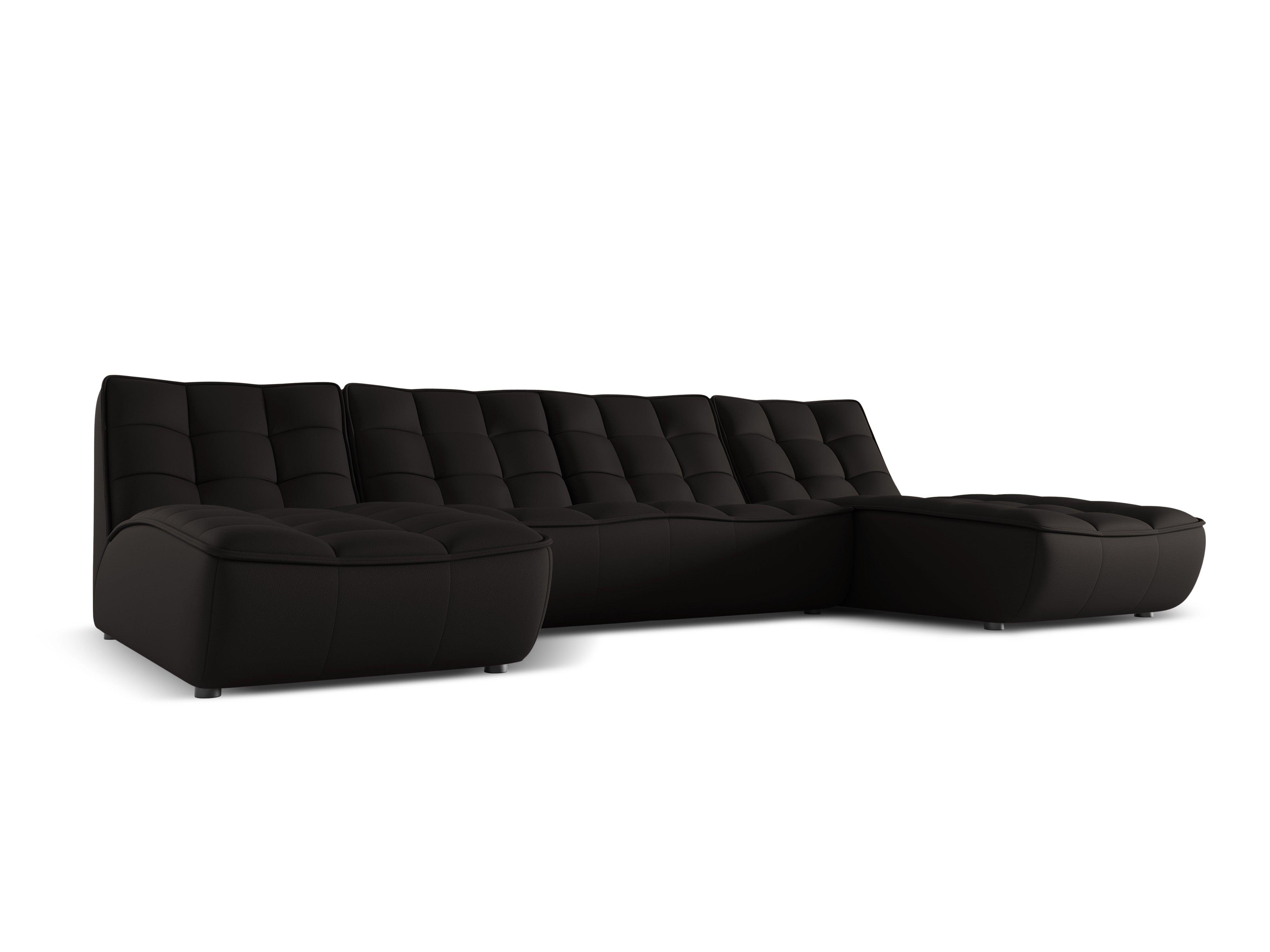 Leather corner sofa for six people Moni defines functionality and comfort combined with modern design. Stylish tufting and an original shape will work perfectly in both an elegant living room and a contemporary office. The line of the seat and backrest is curved and features a gently contoured indentation, offering extraordinary user comfort.