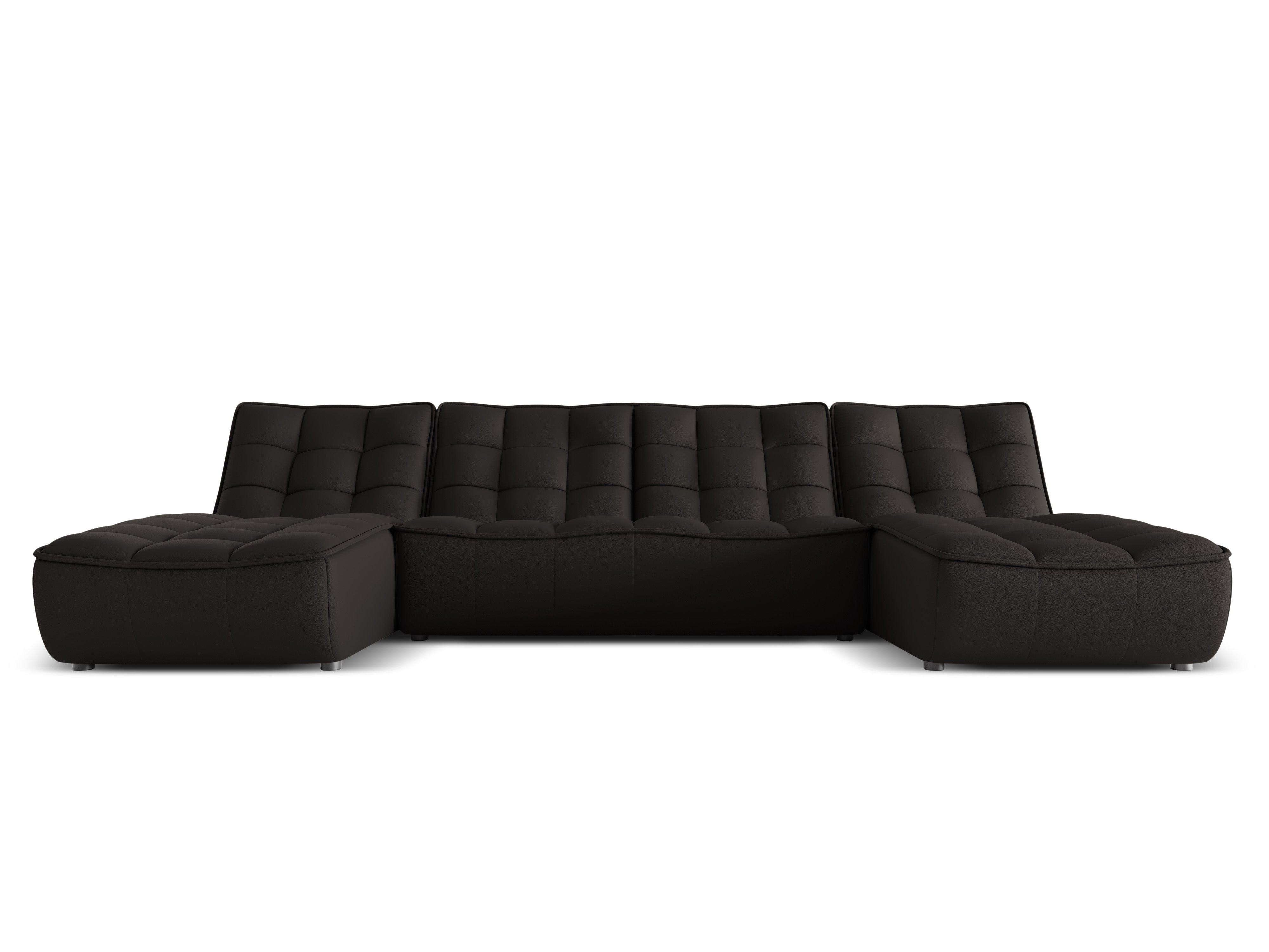The upholstery made of natural cowhide is gently embossed, making its texture very pleasant to the touch. Ergonomic shapes provide free support for the entire back. The Moni collection includes several combinations of sofas and corner units, as well as elements such as armchairs, chaise longues, and poufs.