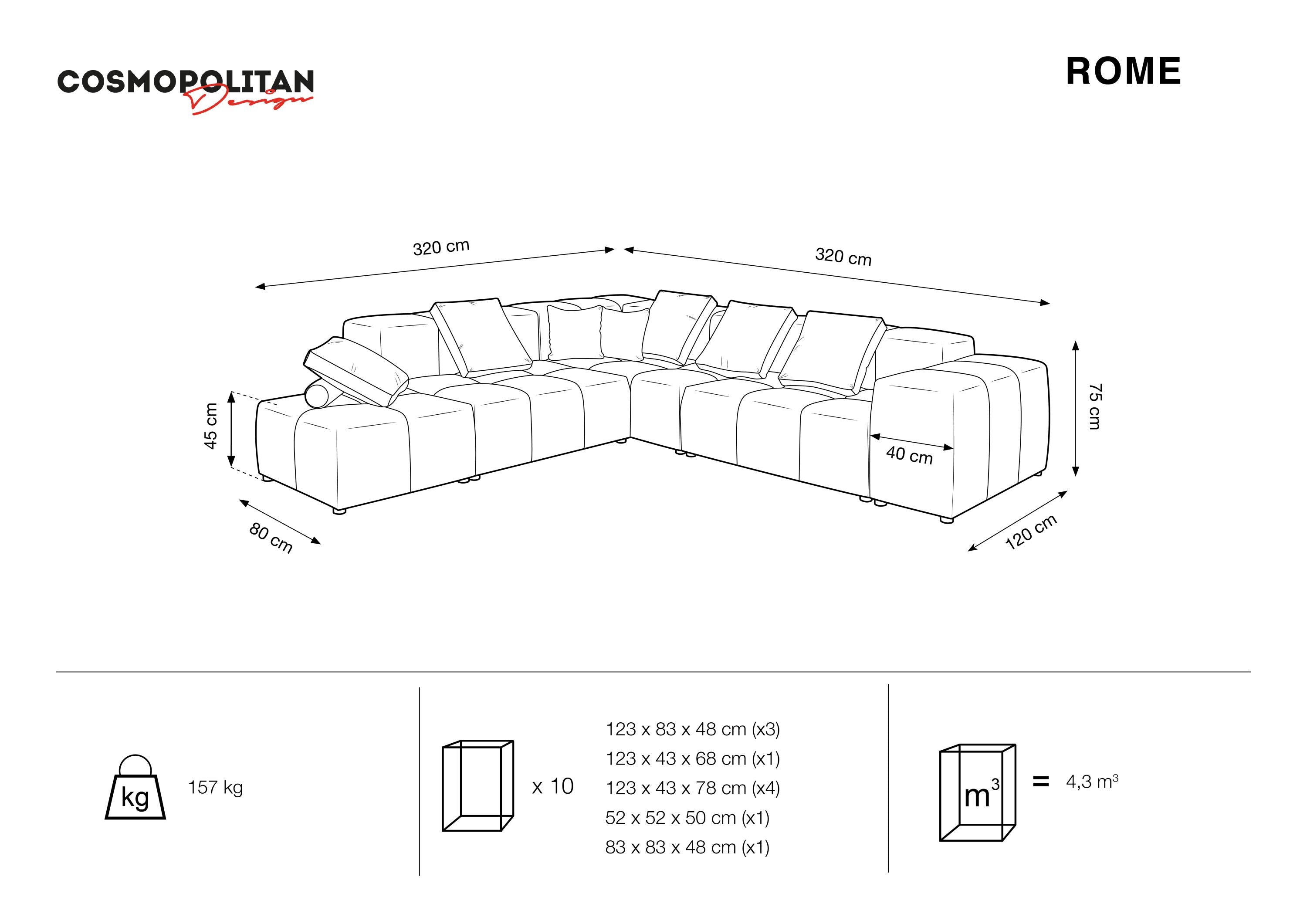 ROME is an extraordinary blend of elegance, comfort, and modernity. The corner sofa is upholstered in beautiful, luxurious fabric, and its unique color creates countless design possibilities. The modular corner sofa not only looks fantastic but is also very pleasant to the touch and resistant to wear.