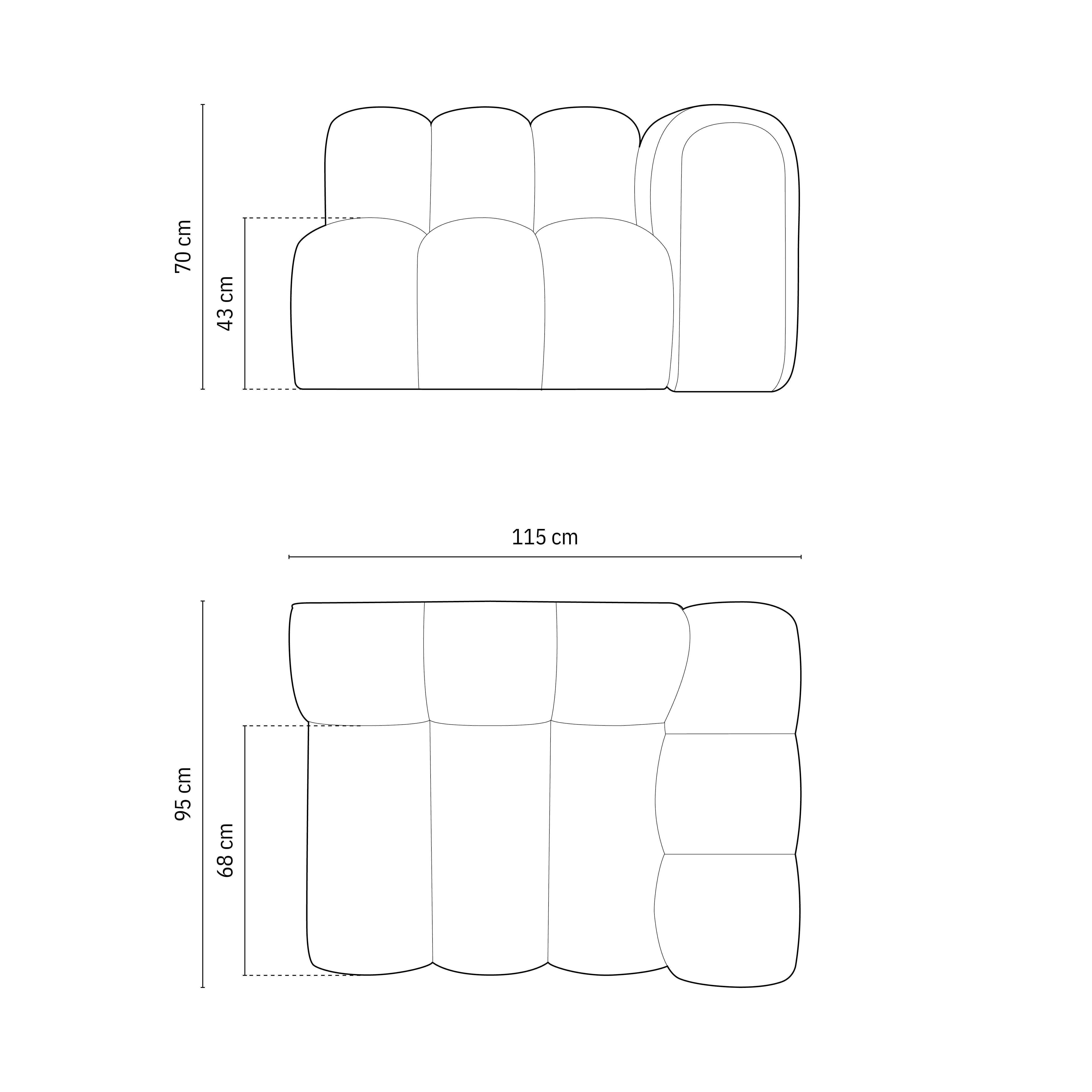 Right-facing velvet modular sofa LUPINE brick - end element