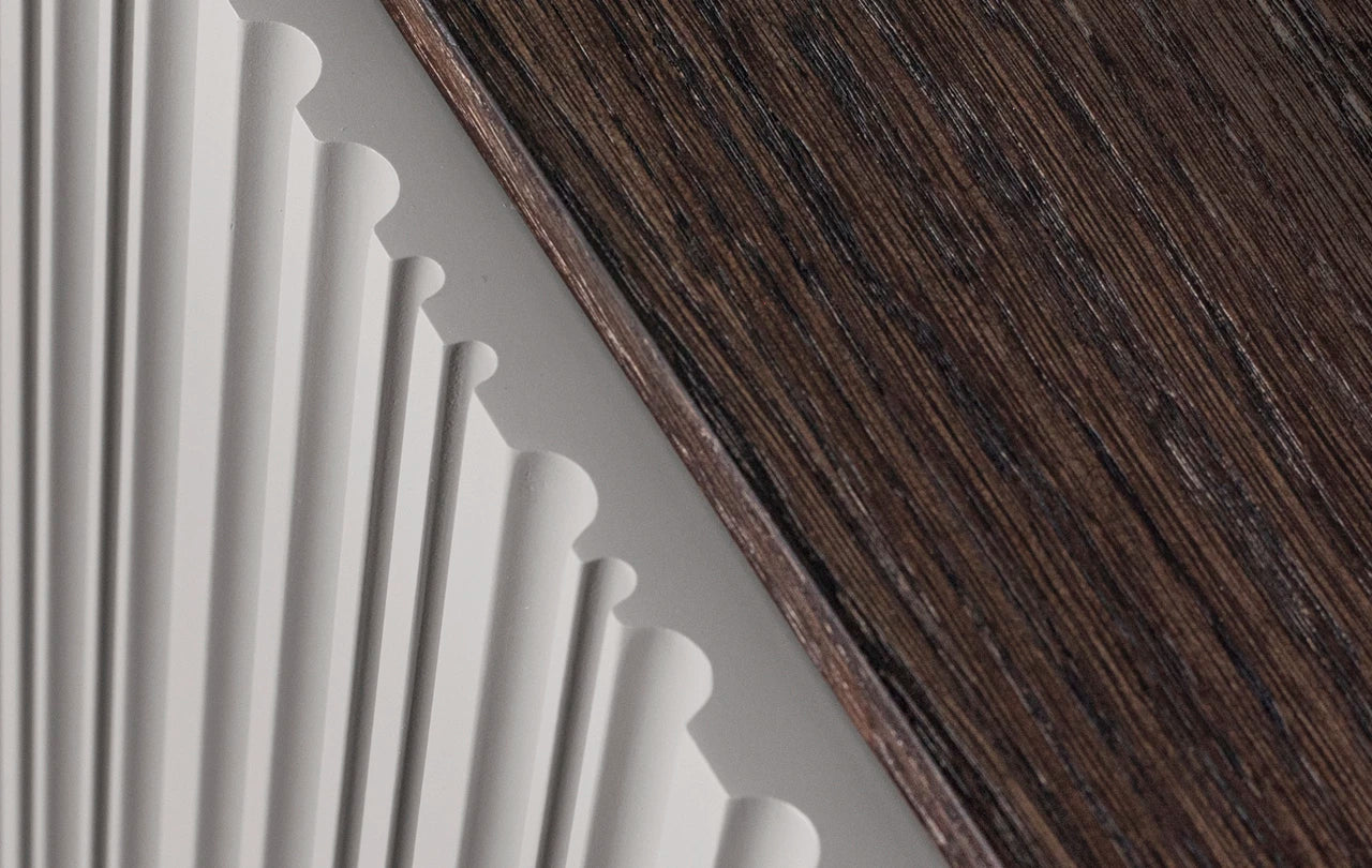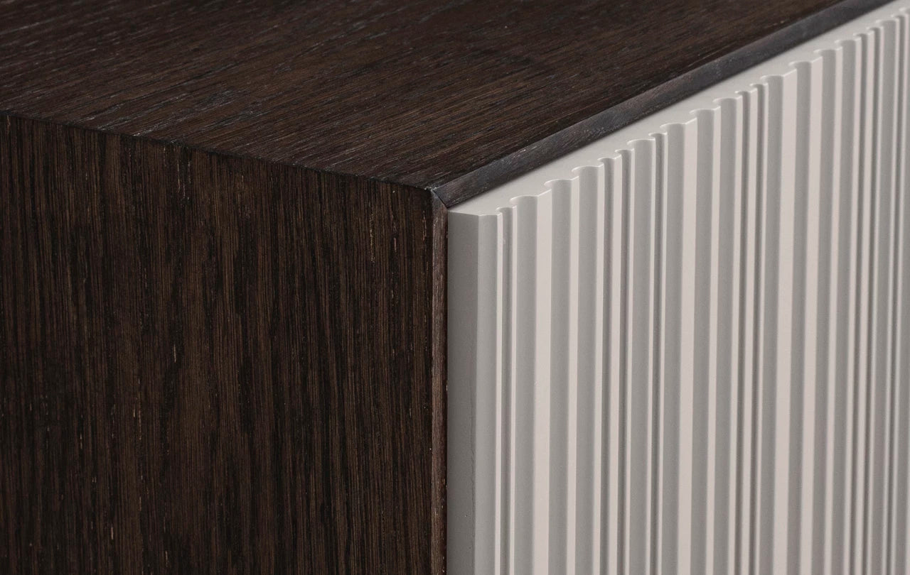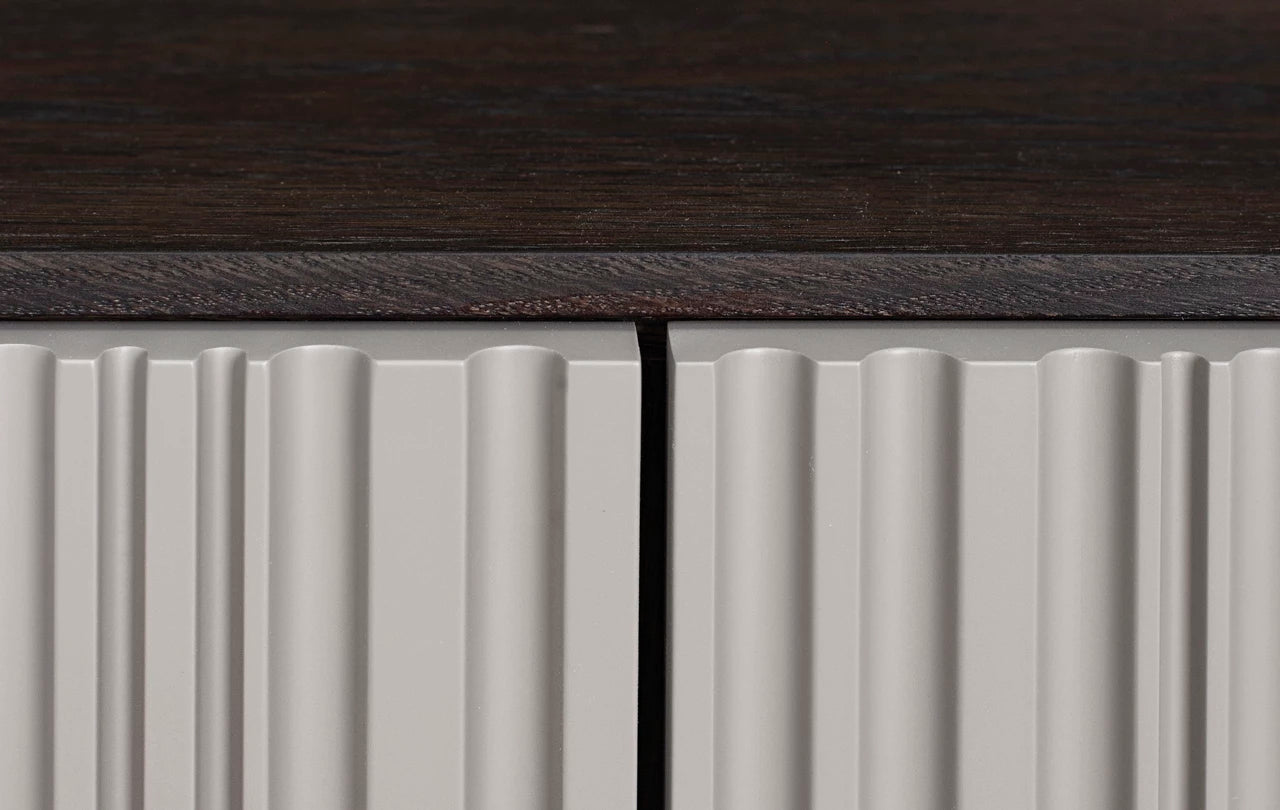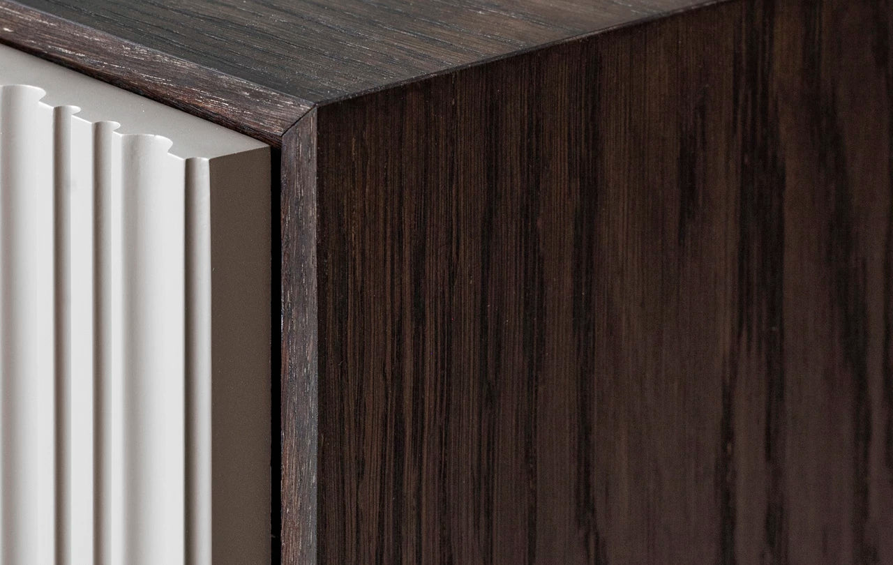 Body elegant dresser Monolight was made of oak veneer with a subtle shade of Walnut, which gives the furniture warm and natural charm. The fronts, in turn, surprise with originality, were made with a special, round cutter, giving them a delicate shape of the harmonica. This unique detail emphasizes the character of the furniture, making it not only practical, but also a unique work of art.