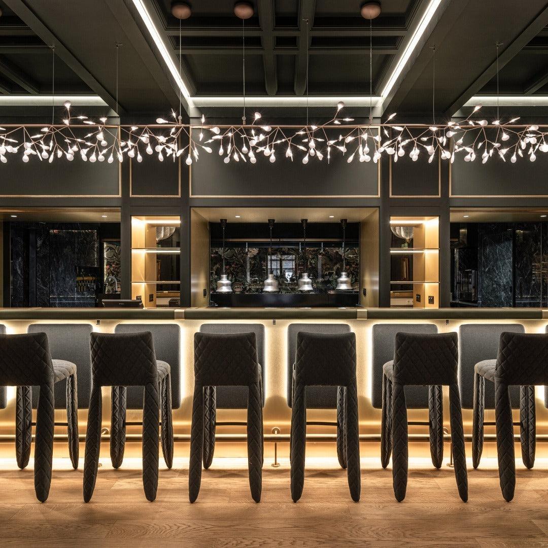 A soft, fluffy, and stylish bar stool, symbolizing the eternal struggle between opposing forces that play out in life, reflecting what we see in ourselves when we dare to open our eyes. Scary? Not at all! When you sit down and enjoy the comfort and softness of this bar stool, you'll forget about the monster..