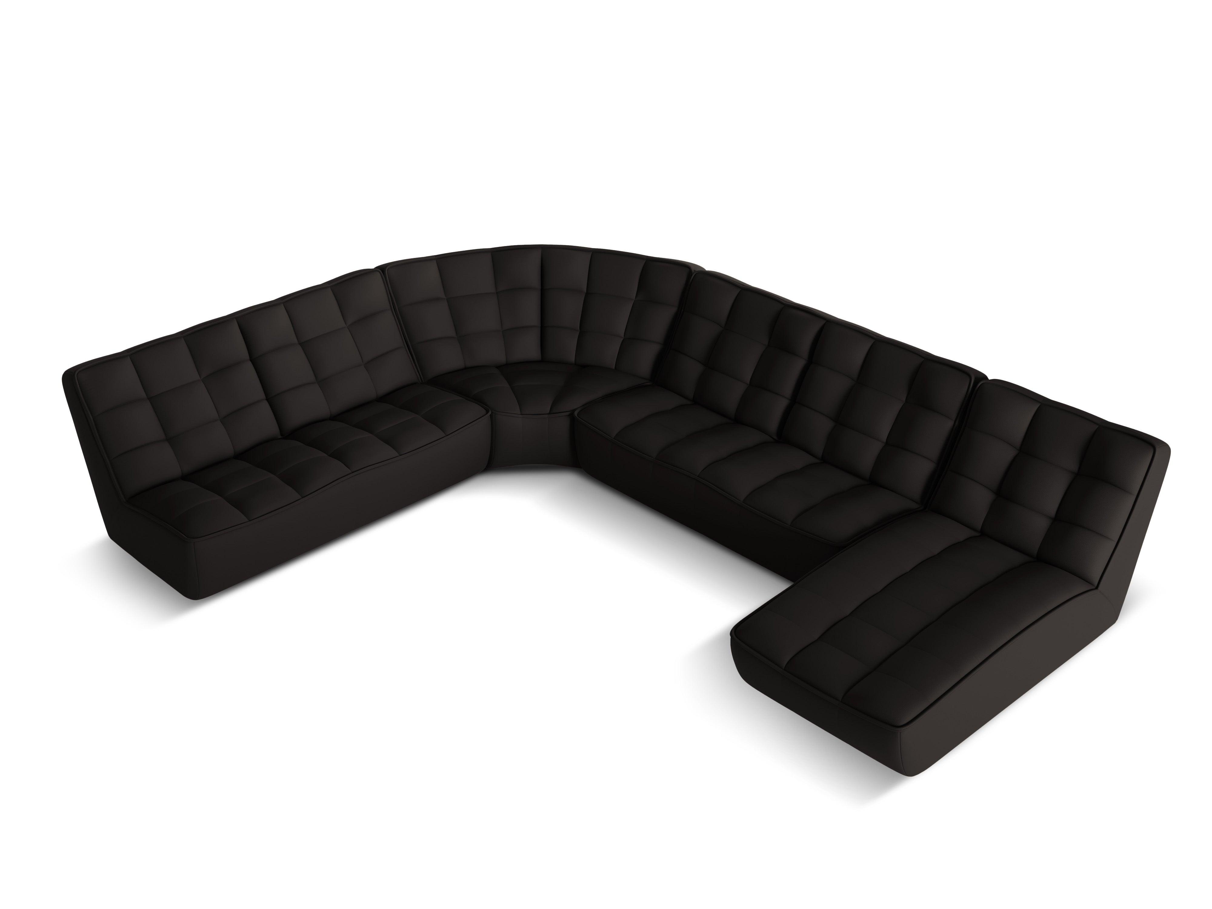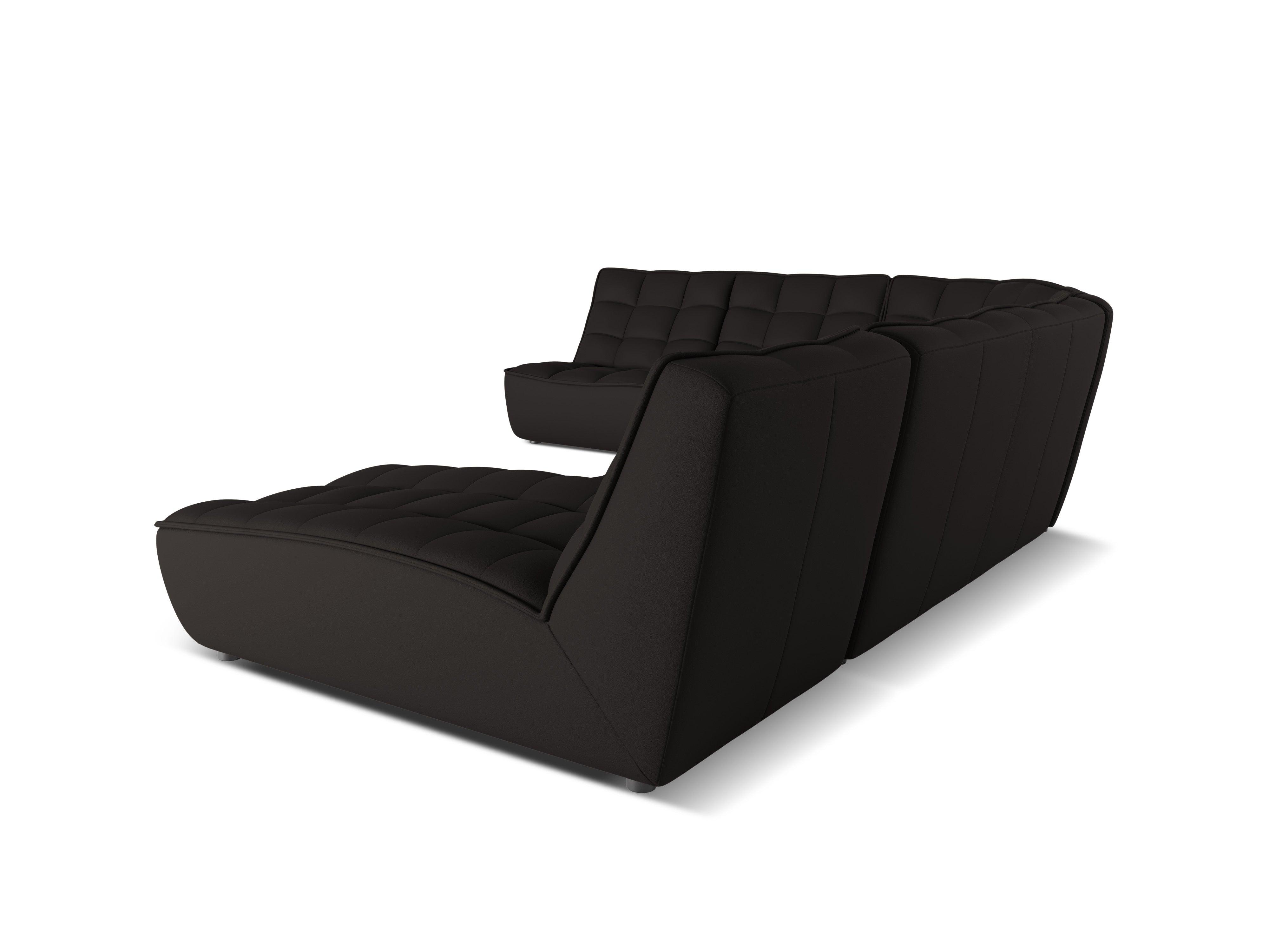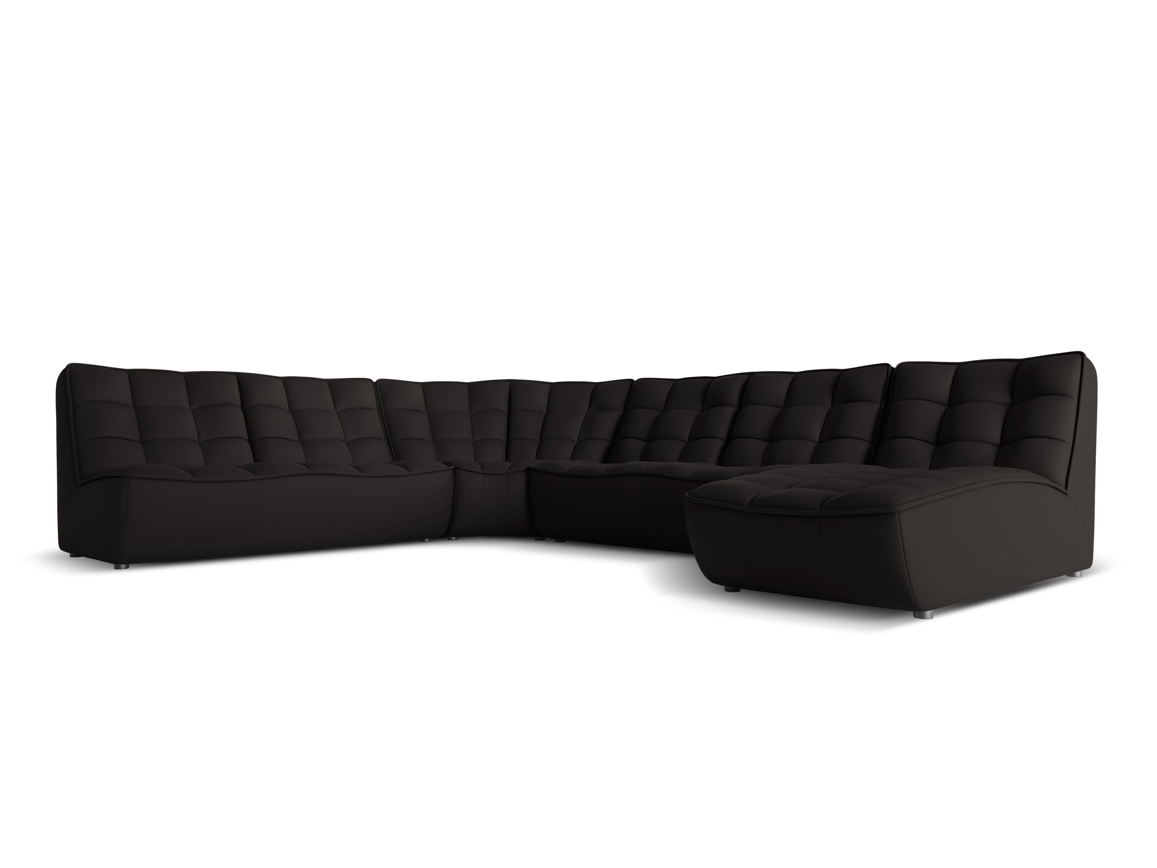 The leather corner sofa for eight people Moni defines functionality and comfort combined with modern design. The stylish tufting and original shape are perfect for both an elegant living room and a contemporary office. The line of the seat and backrest is curved and features a gently contoured indentation, offering extraordinary user comfort.