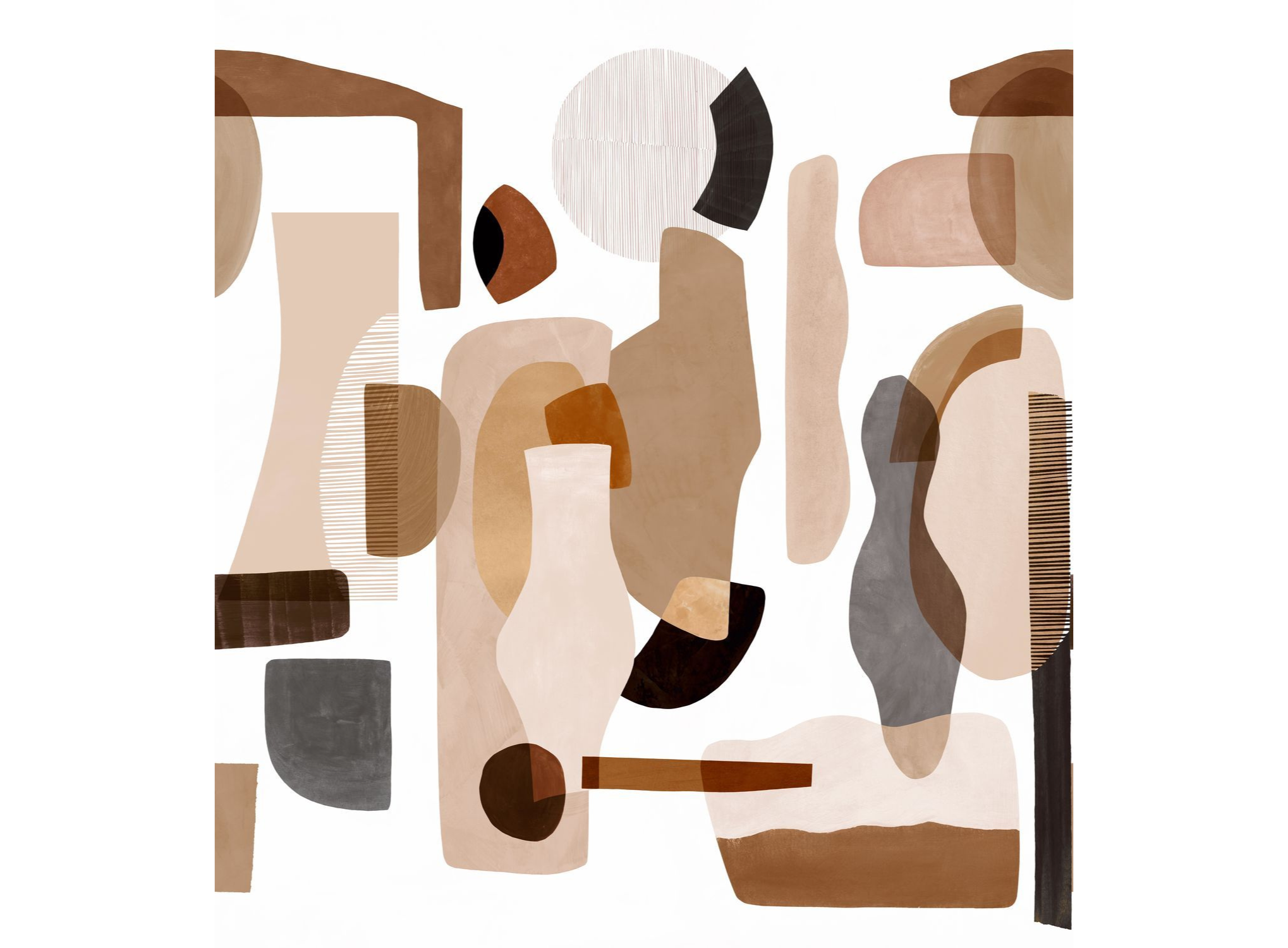 Mural with Abstract Pattern AUDRIA Brown with Beige