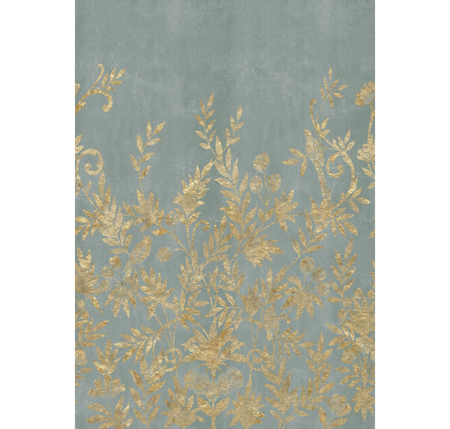 Mural with a plant motif of JARDIN DE DIANE leaves in gray-blue with gold