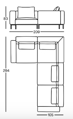 Left-facing 3-seater modular sofa HOLDEN upholstered with a black base