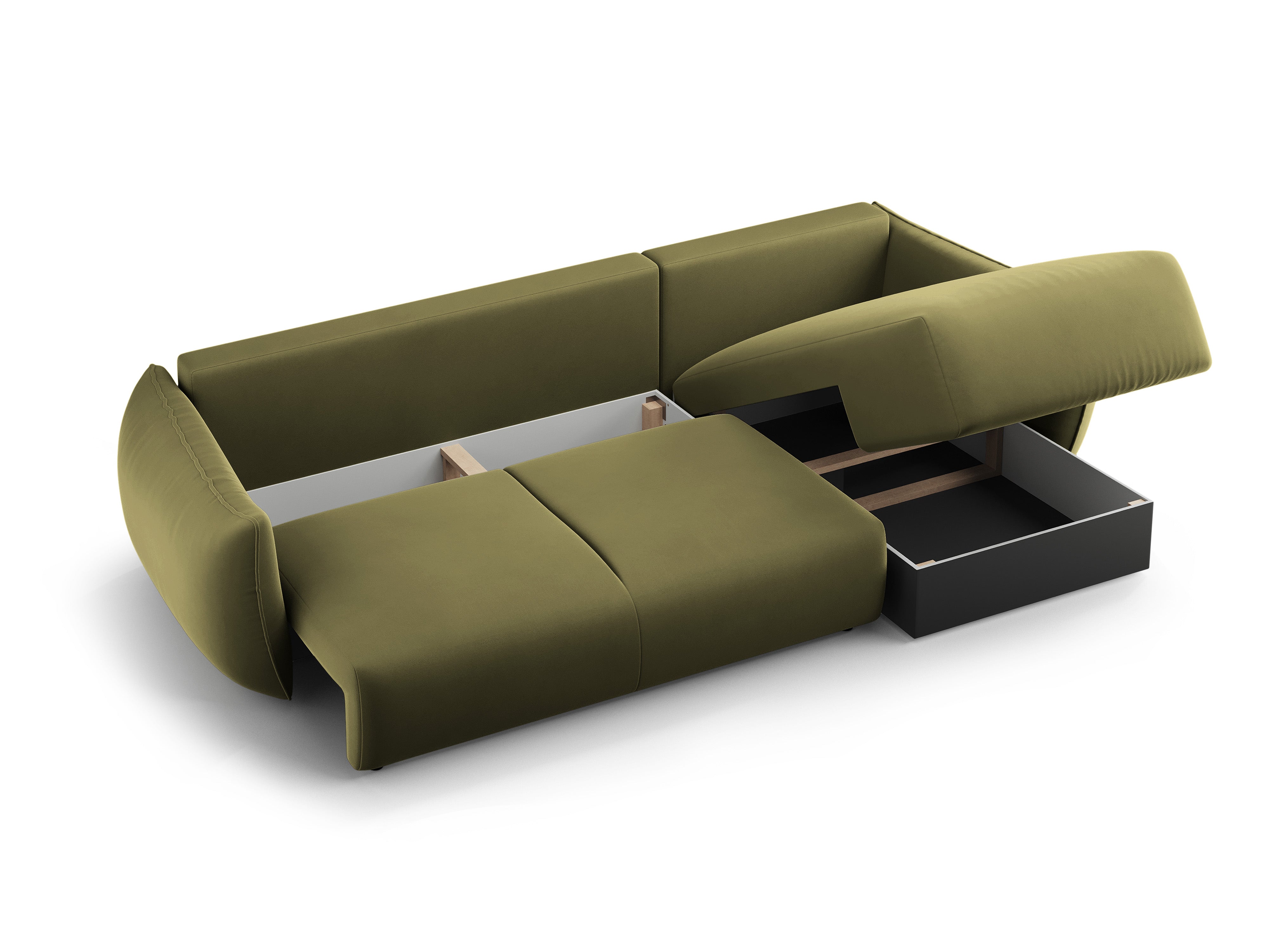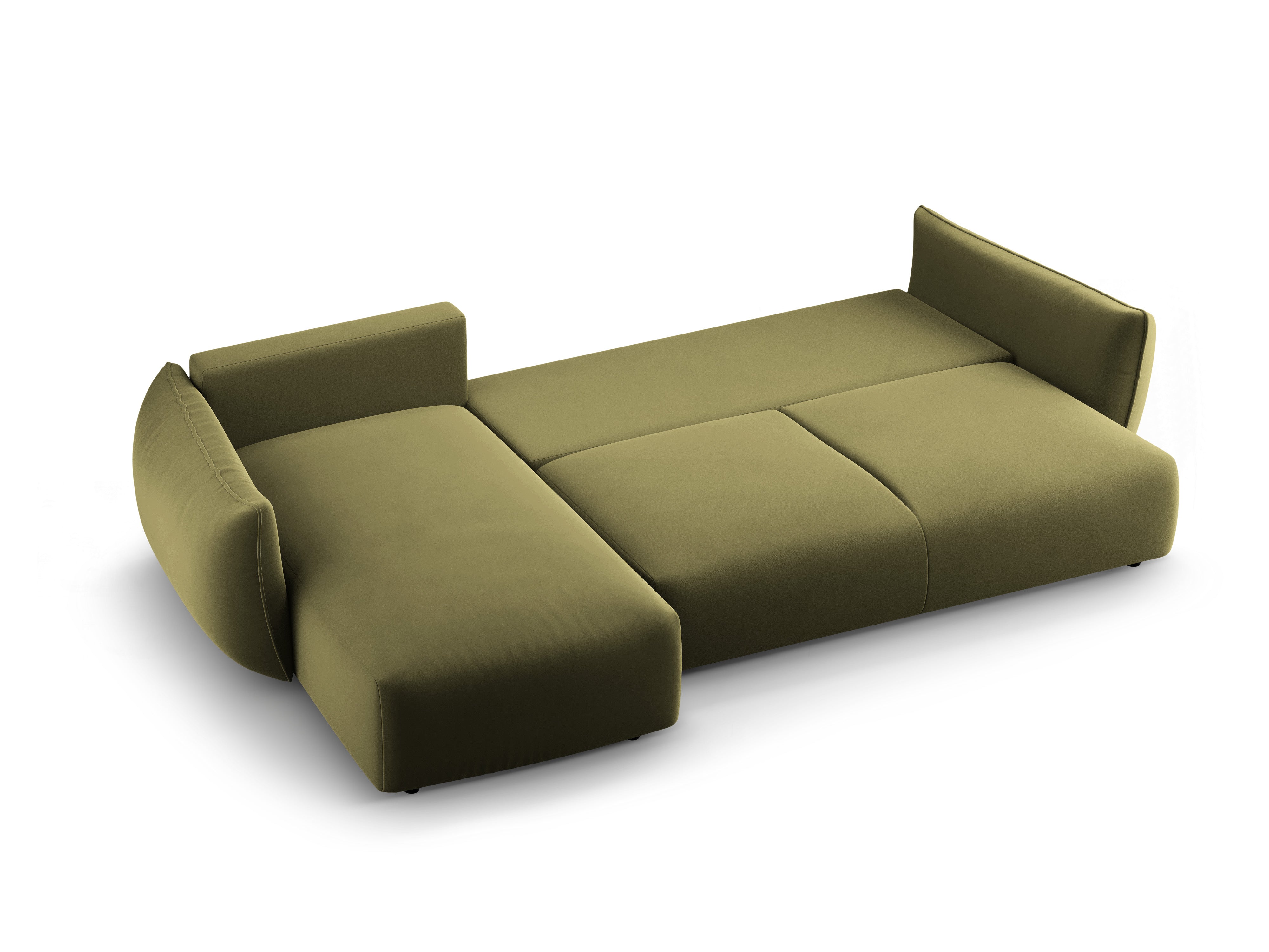 Left-facing velvet corner sofa with sleeping function MATERA in olive green