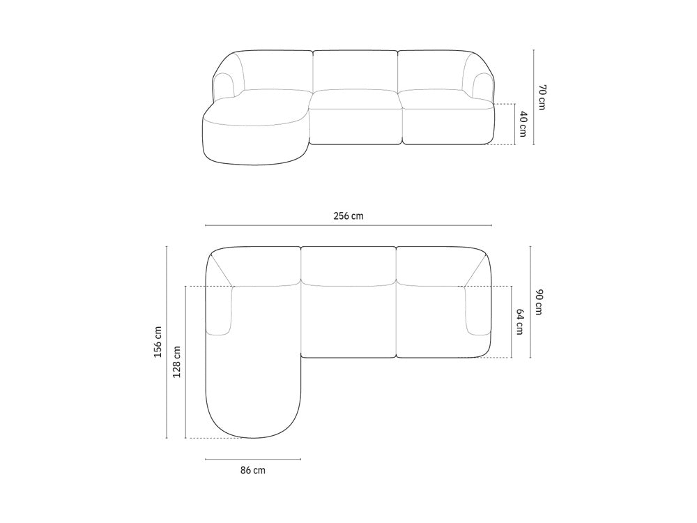 Left-sided 4-seater corner sofa CAMPI cream chenille