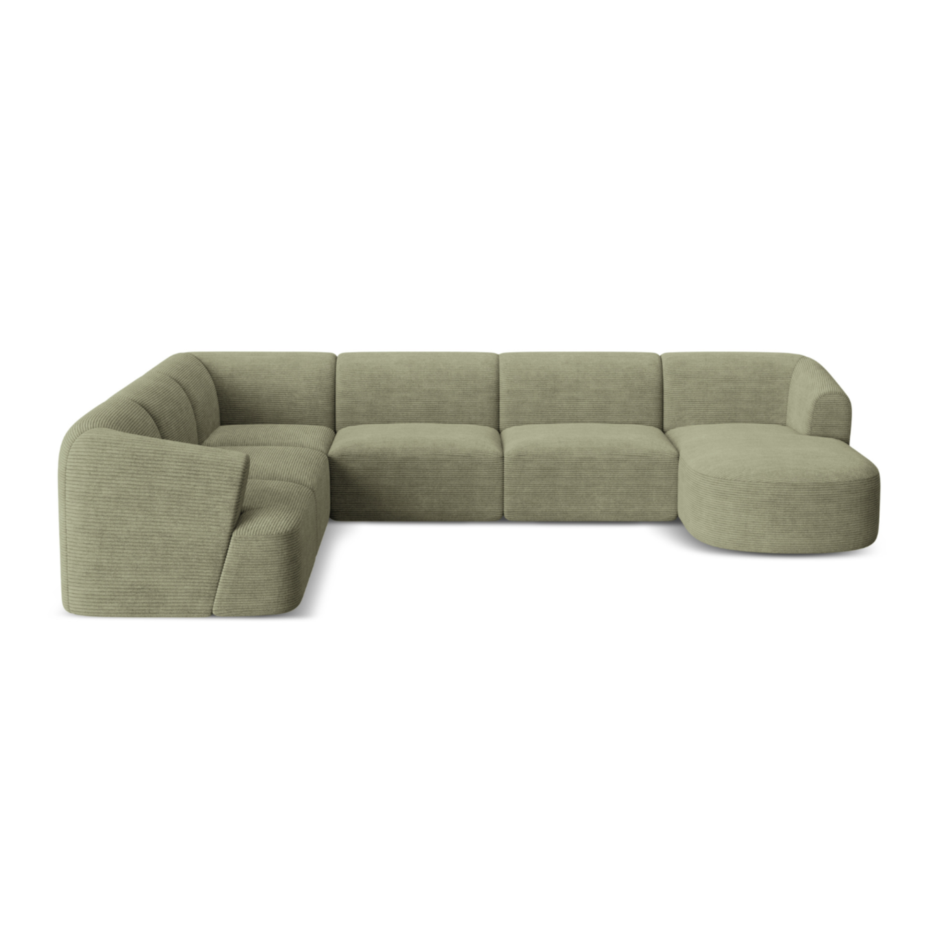 Left-sided panoramic corner sofa for 7 people CAMPI green corduroy
