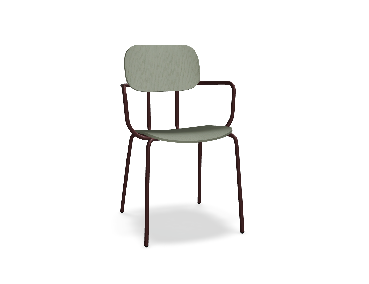 Plywood Chair New School is a modern take on the classic school chair, offering many configurations. In its four-legged version, with optional armrests, it is perfect for offices, cafeterias, and also in home spaces. The plywood seat is durable and easy to maintain, making it ideal for places with high user turnover.