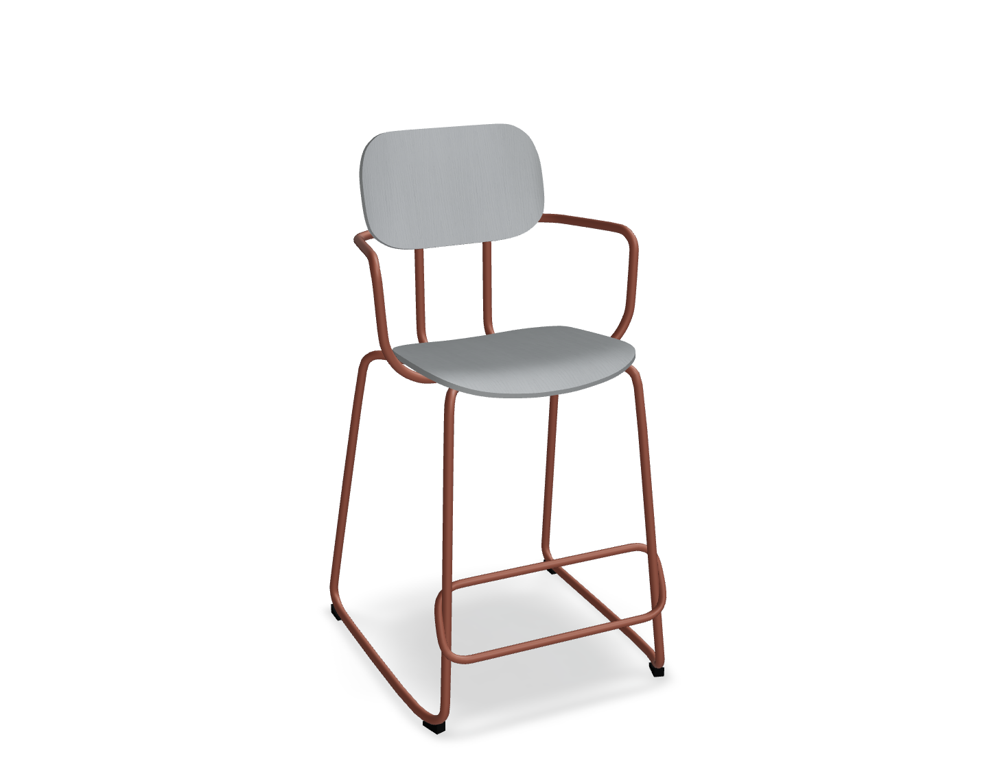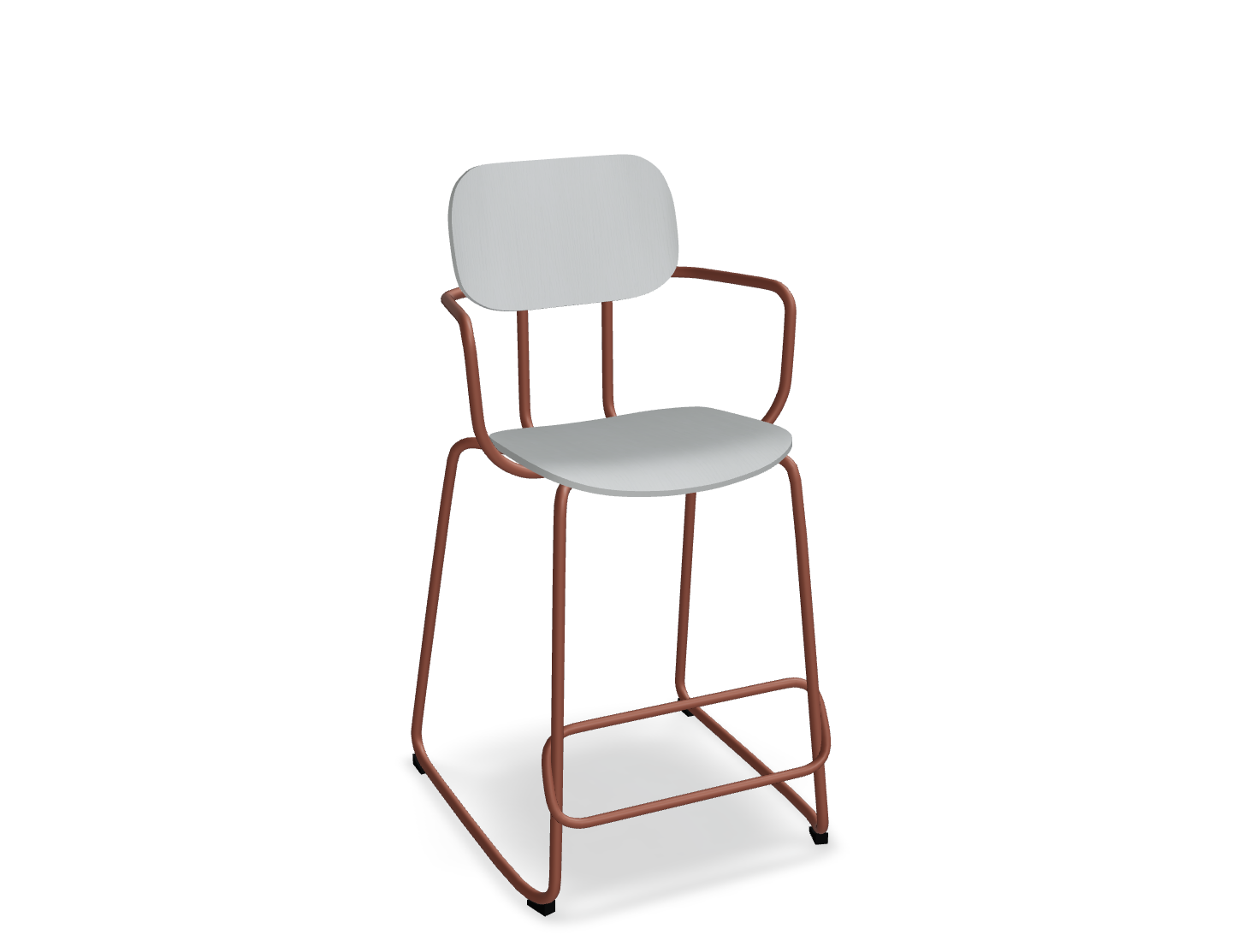 Hoker New School, designed by Studio Form US with Love, is a modern reinterpretation of a traditional school chair. This stool is perfect for office canops, bars, cafes and kitchens with a high top. Available in two heights, it allows you to match various countertops. It is distinguished by an integrated footrest and optional armrests, which increases the comfort of use.