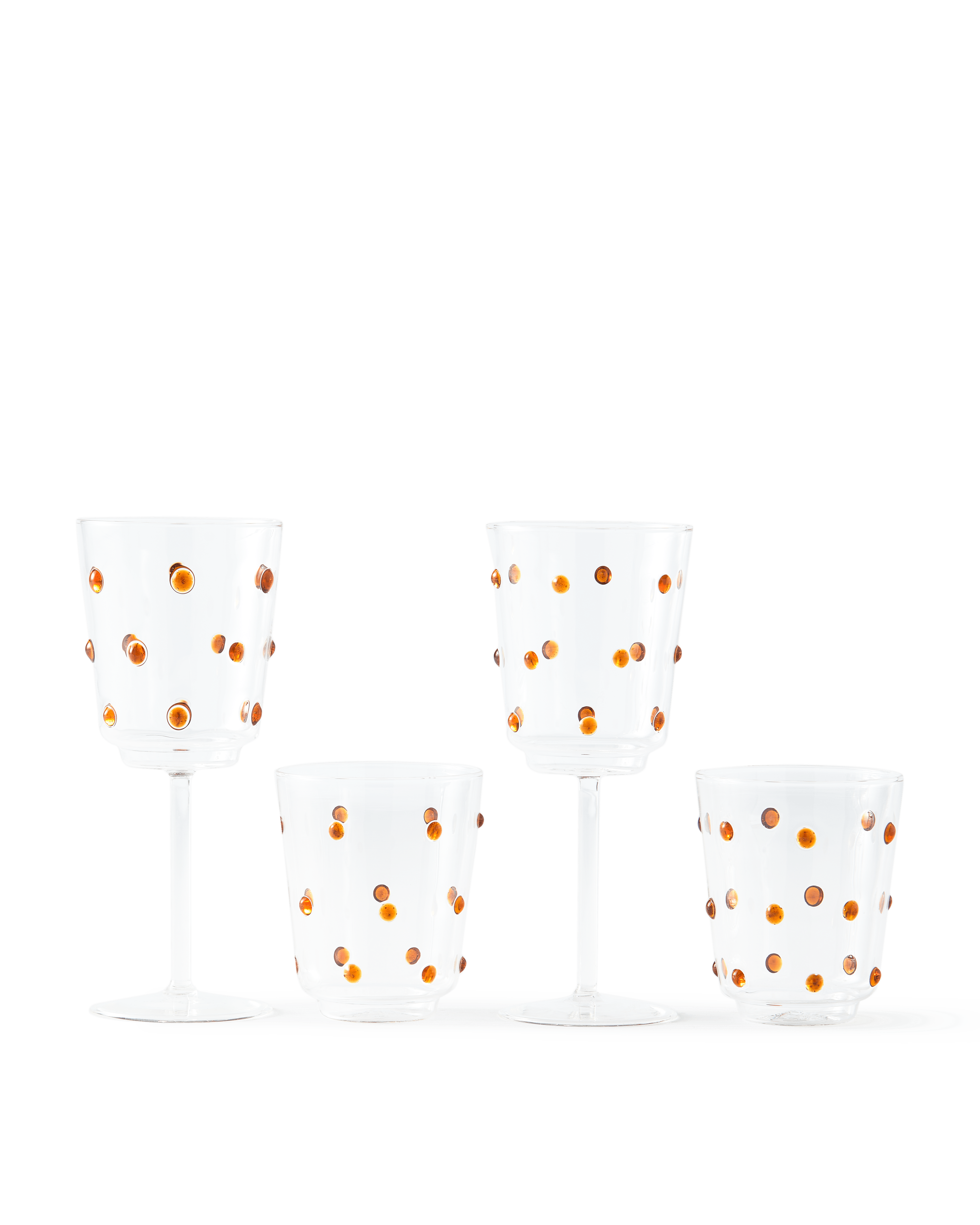 Nob Glasses Set with brown dots is a true masterpiece of craftsmanship and functionality. These glasses are incredibly versatile, temperature-resistant, and suitable for both hot and cold beverages. A unique feature of their design is the hand-placed brown dots, which give them a distinctive character and make each glass unique. This combination of artisan care and excellent functionality makes the Nob glasses set an indispensable product.