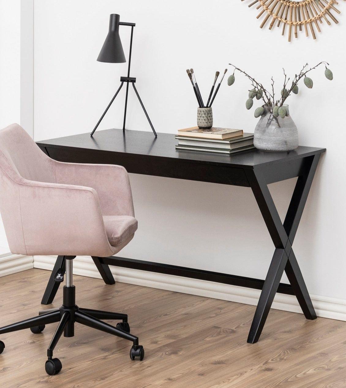 Nora's office chair dirty pink with a black base