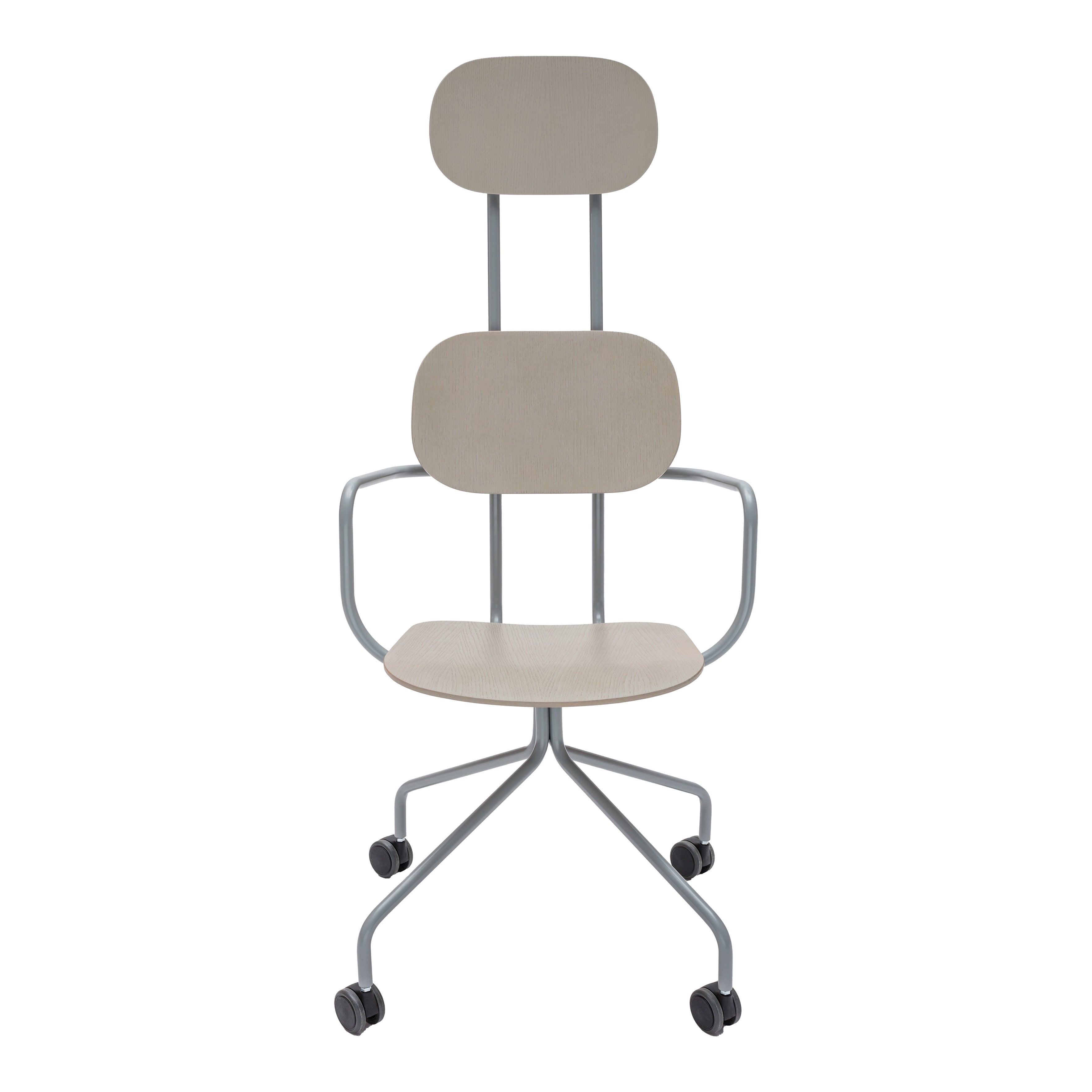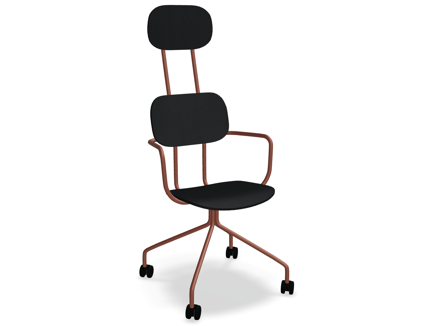 Office chair with headrest New School, designed by Studio Form US with Love, attracts attention with a modern form of double support. This version provides support for the whole back, and the headrest additionally increases the comfort of use. Thanks to the wheels and armrests, the New School chair is not only comfortable, but also functional, allowing for freedom of movement and a comfortable position, even during a longer sitting.