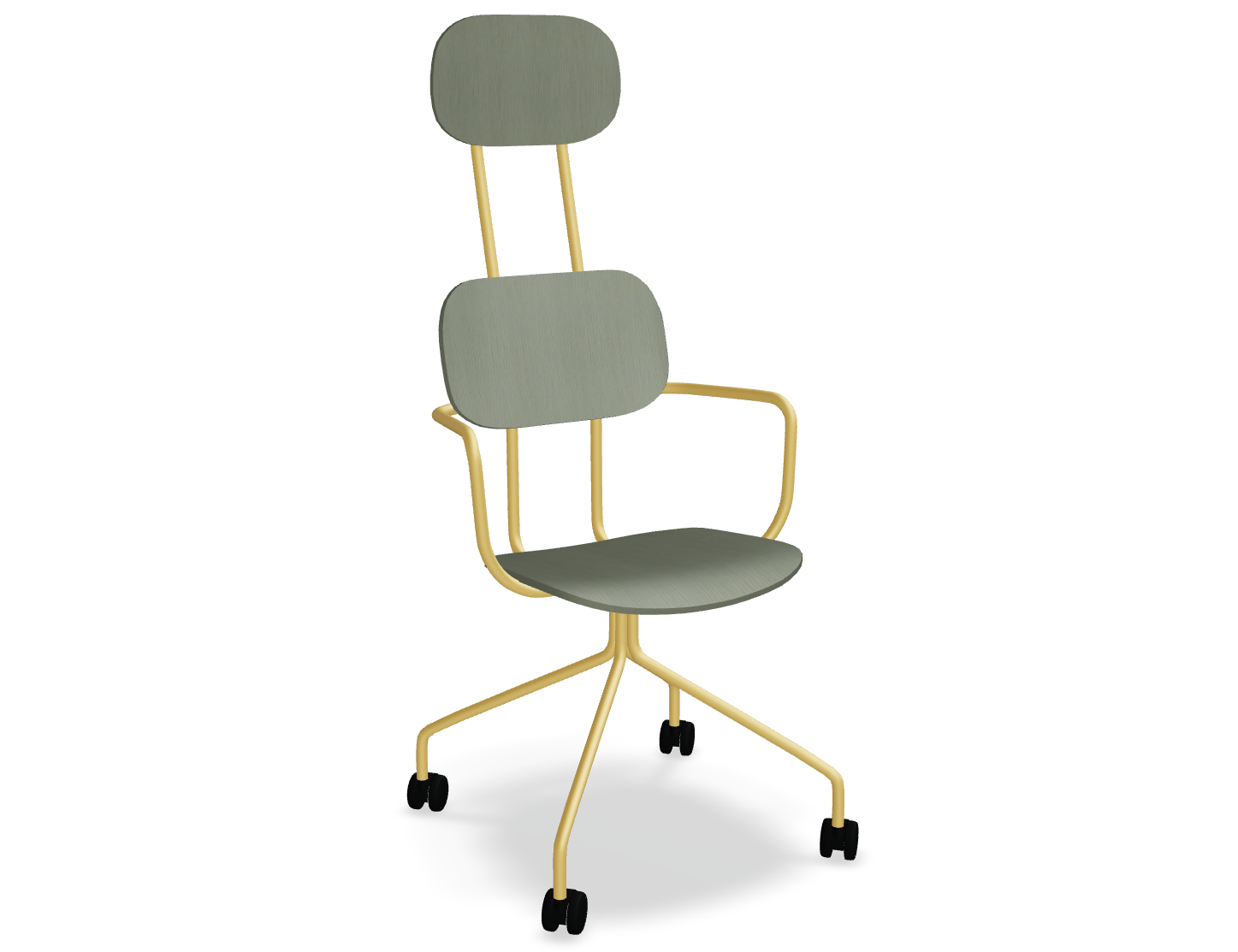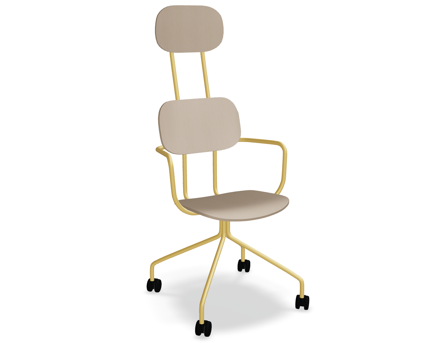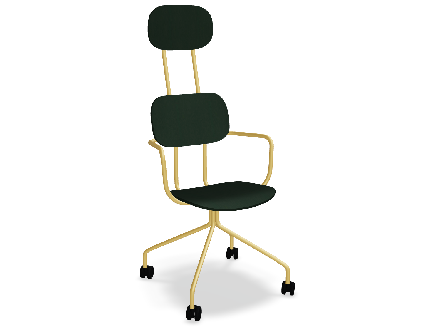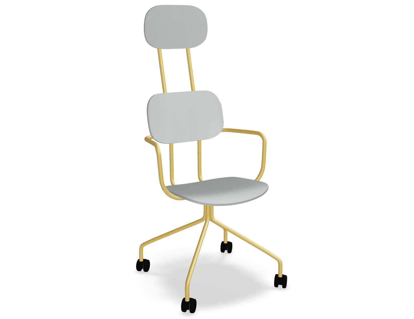 Office chair with headrest New School, designed by Studio Form US with Love, attracts attention with a modern form of double support. This version provides support for the whole back, and the headrest additionally increases the comfort of use. Thanks to the wheels and armrests, the New School chair is not only comfortable, but also functional, allowing for freedom of movement and a comfortable position, even during a longer sitting.
