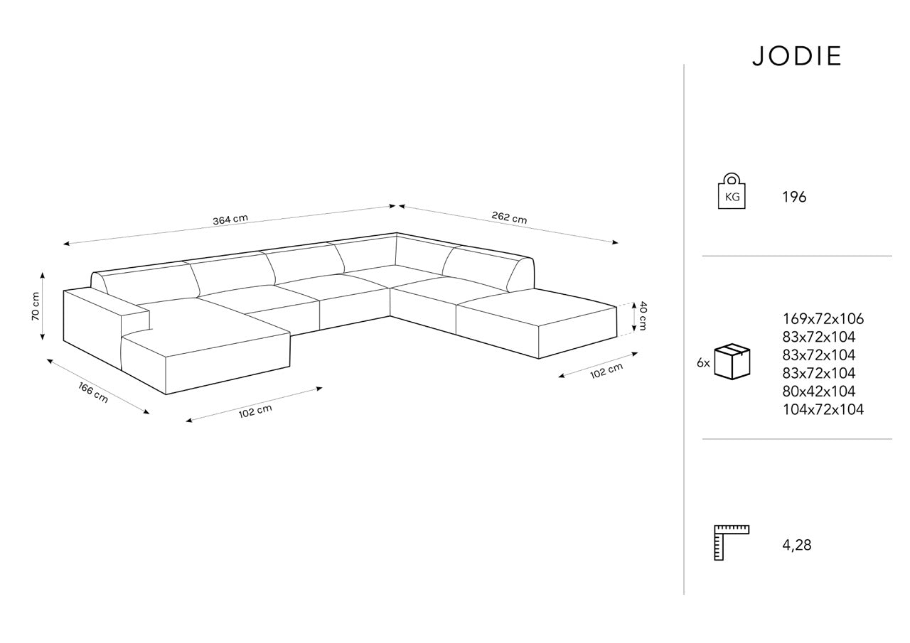 Jodie panoramic sofa is very comfortable thanks to its large size, which allows seating up to seven people. Additionally, it features soft, comfortable back and seat cushions that provide comfort during use.