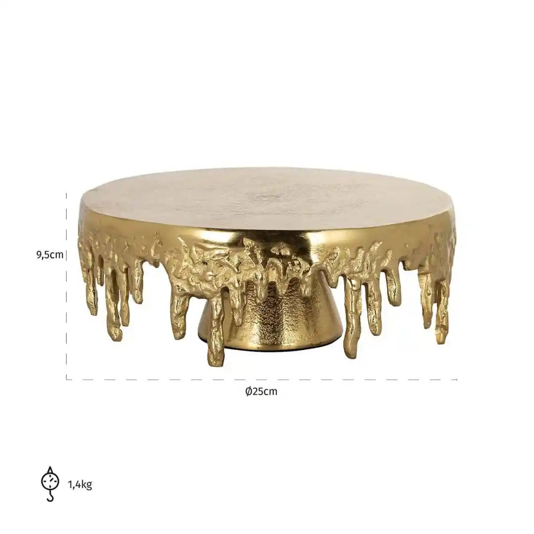 Elegant cake stand Carmona in gold is a unique piece that combines functionality with artistic design. Its unconventional shape with decorative embellishments resembling flowing metal catches the eye and adds a luxurious character to the interior. It is perfect for serving cakes, pastries, and desserts, highlighting the uniqueness of every occasion.