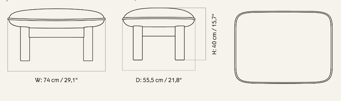 Ottoman Brasilia is an elegant and functional addition designed by the duo Anderssen & Voll, inspired by Brazilian modernism and Danish craftsmanship of the mid-20th century. The characteristic, massive legs in the form of cylinders and the soft, rounded cushion give it a timeless look and exceptional comfort.
