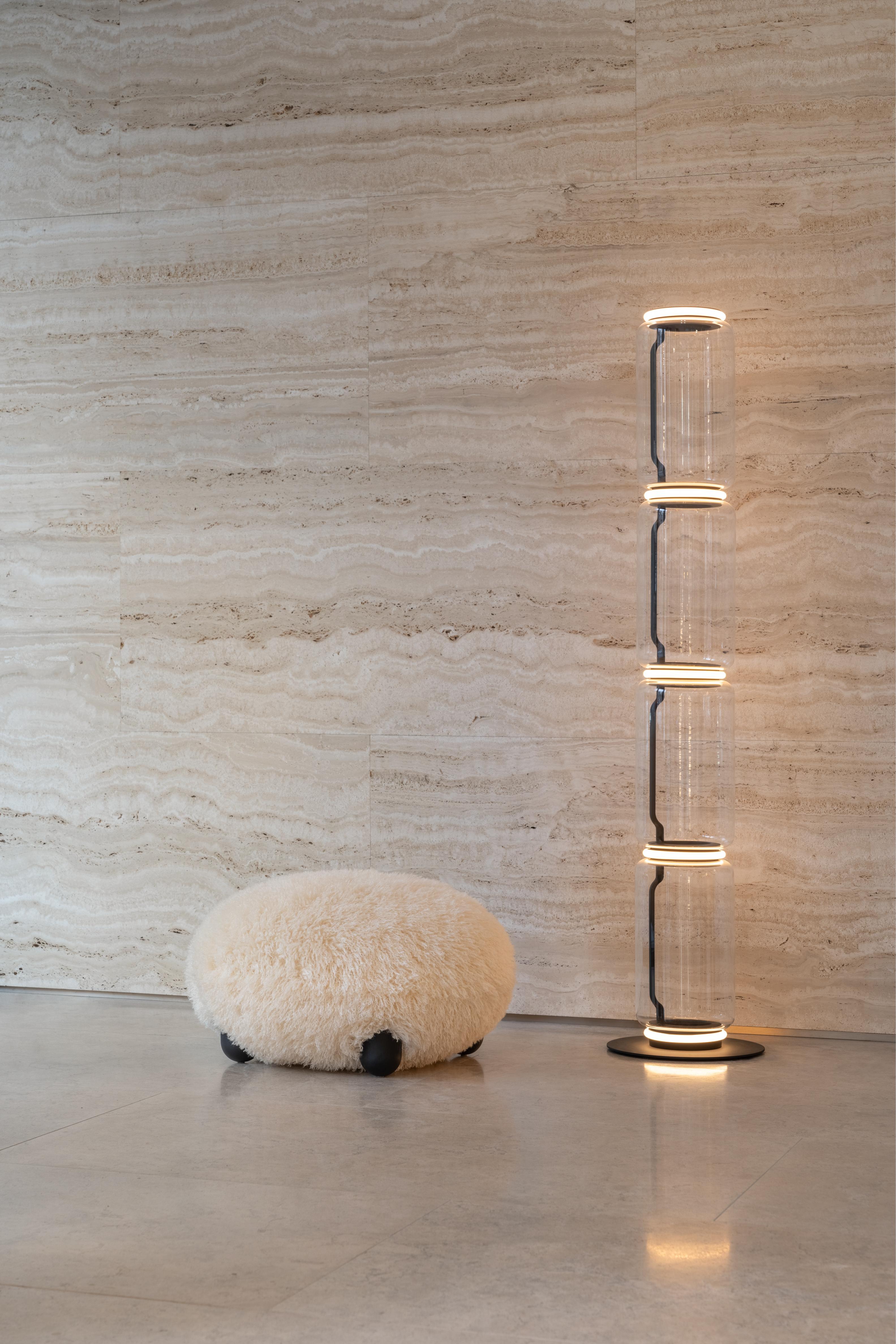 FLOCK Pouf - FLUFFY EDITION artificial fur with a wooden base