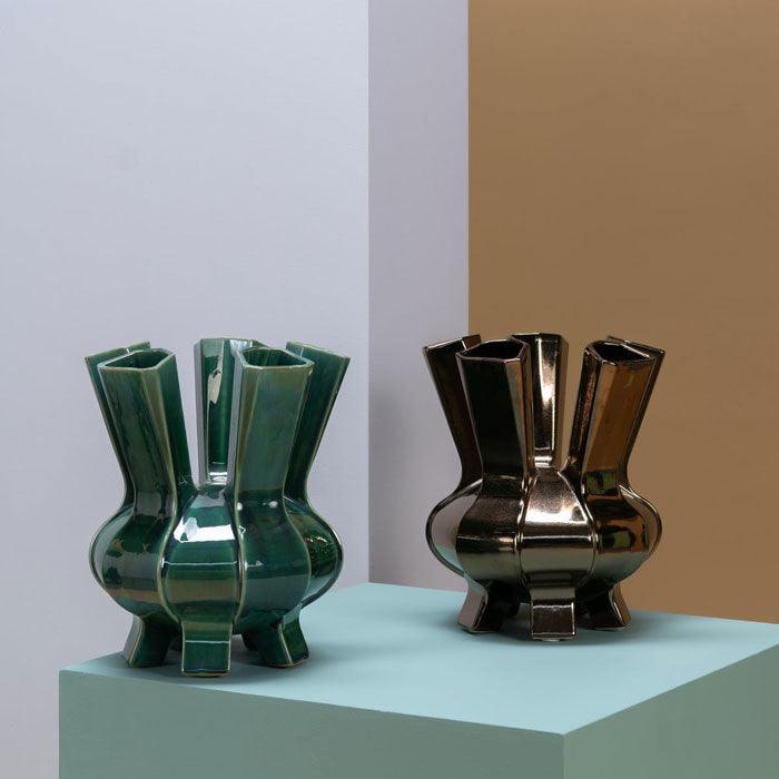 Green vase Puyi combines the architecture of the Forbidden City with a modern, even modernist form. The Puyi vase, created for Polspotten, is a design by the esteemed Dutch designer - Roderick Vos.