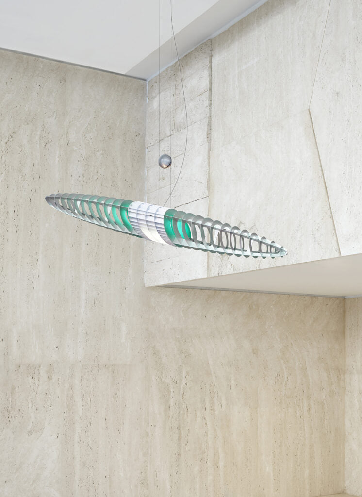 Thanks to five replaceable polycarbonate filters, you can adjust the color of the aluminum body lamps No effect on the quality of white light. These filters are available separately, which allows any personalization of the lamp. Light but solid design allows Queen Titania to be suspended on various surfaces, including sloping ceilings and gypsum and wooden ceilings.