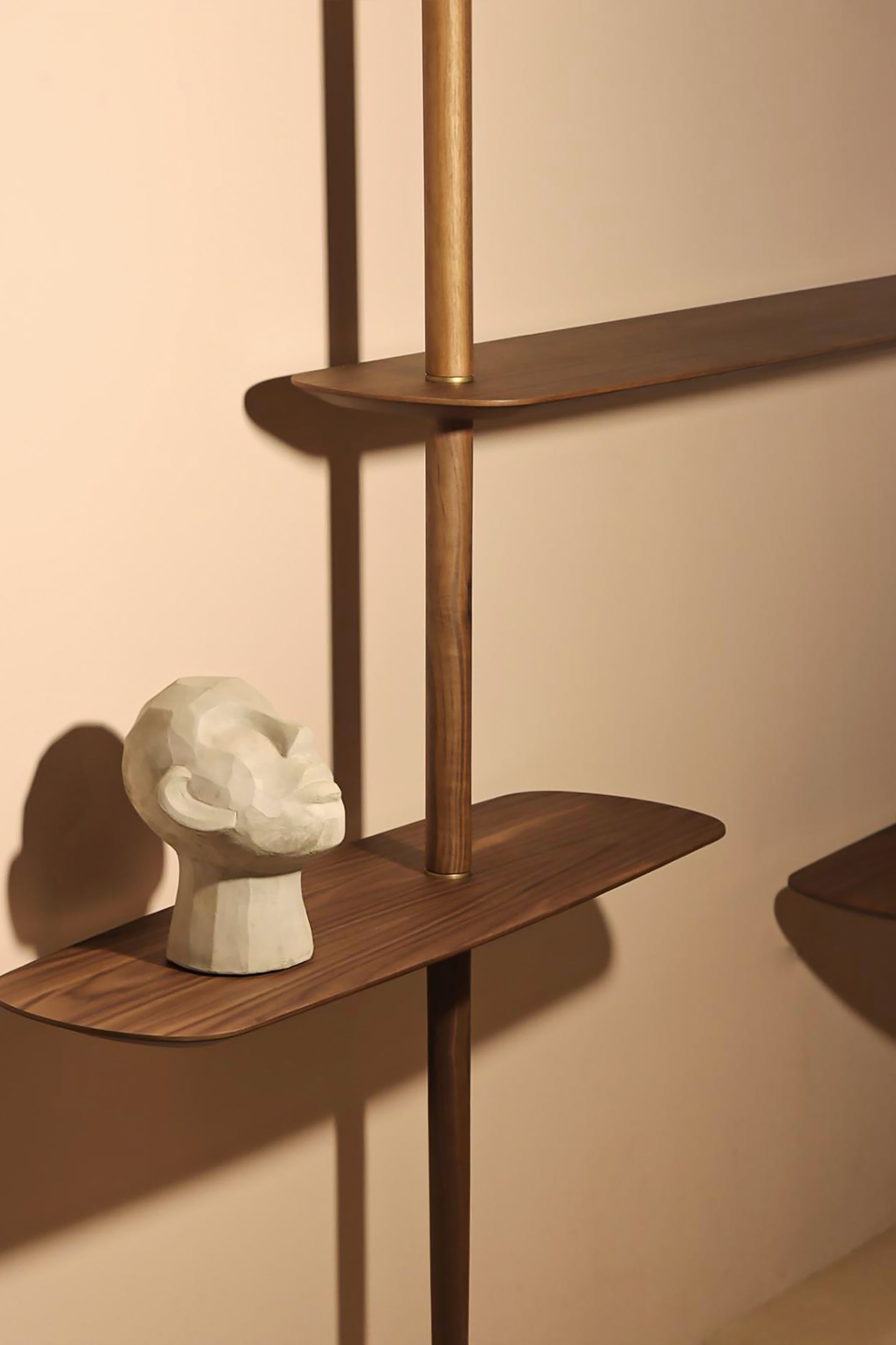 The Axis 3 is an expanded wall shelf that combines a minimalist form with sculptural lightness. This elegant shelf made of solid wood and shelves finished with natural veneer perfectly highlights the character of both modern and classic interiors, creating a striking yet harmonious composition on the wall.