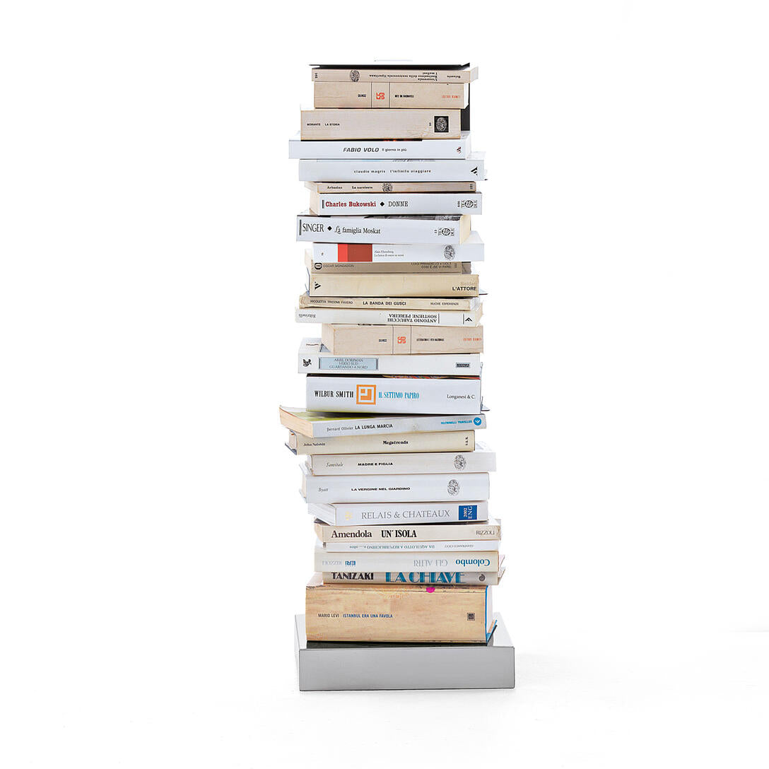 Shelf Original Ptolomeo, designed by Bruno Rainaldi and awarded the prestigious Compasso d’Oro in 2004, is an icon of contemporary design that revolutionizes the way we store books. This freestanding, vertical shelf appears to be a simple steel column to which thin shelves are attached. When filled with books, it disappears from view, showcasing only its contents, creating a unique effect – as if the books are floating in the air.