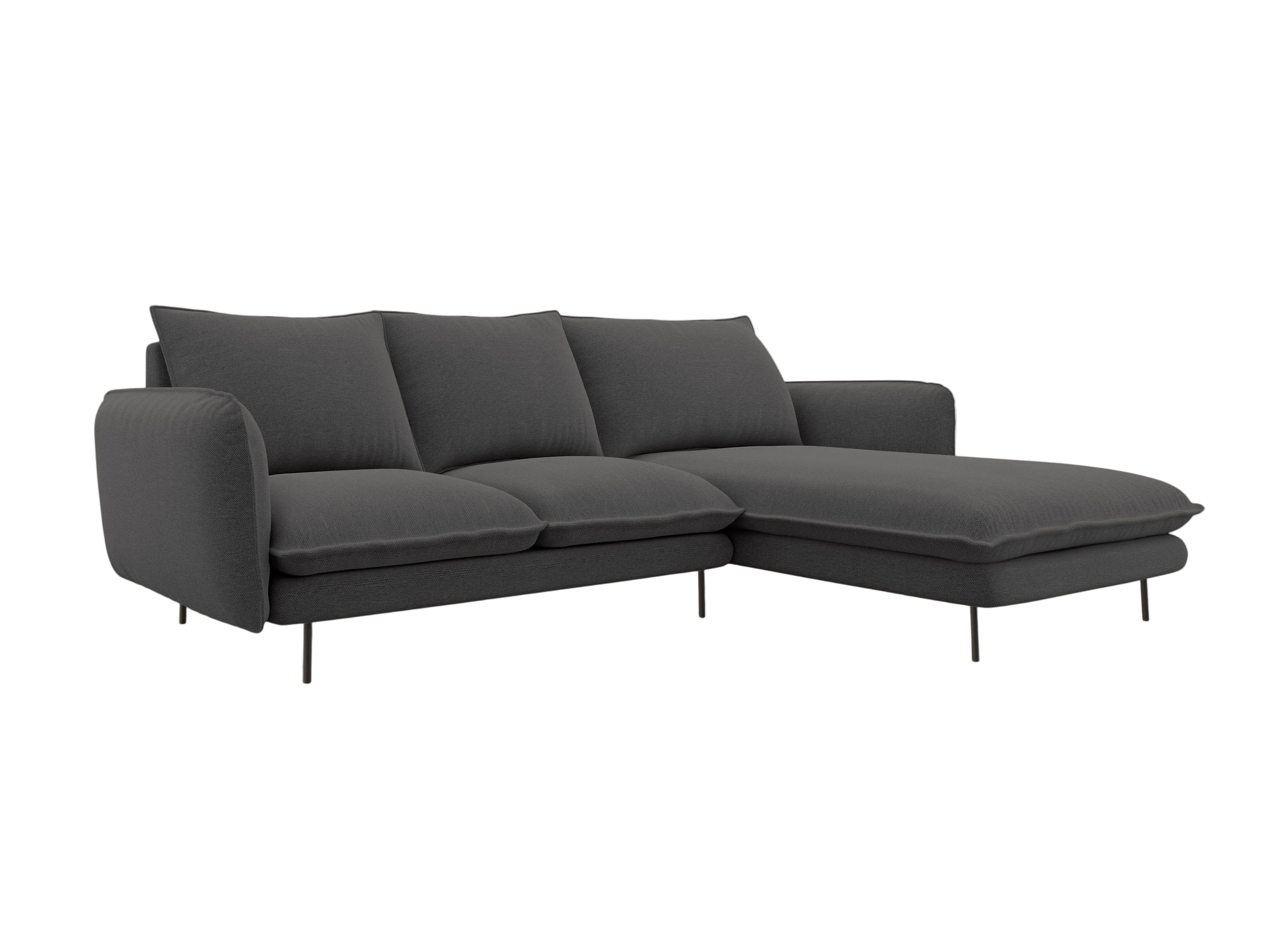 Right-facing corner sofa for 5 people VIENNA dark gray chenille with black base