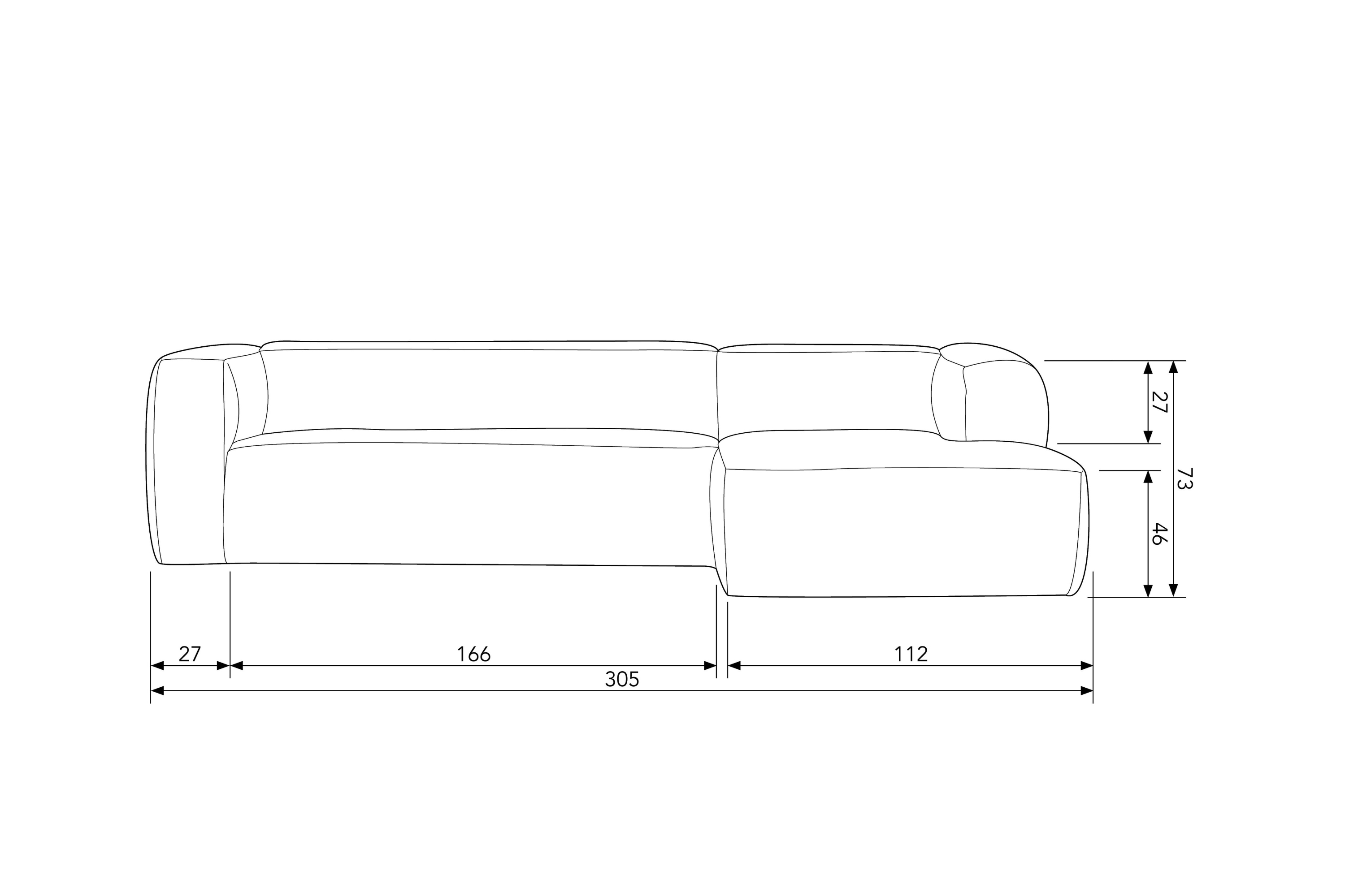 The frame is made of beech and pine wood, making the corner sofa very durable. The exclusive Bean collection impresses with its high quality of craftsmanship and will be the perfect complement to a spacious living room or luxurious office.