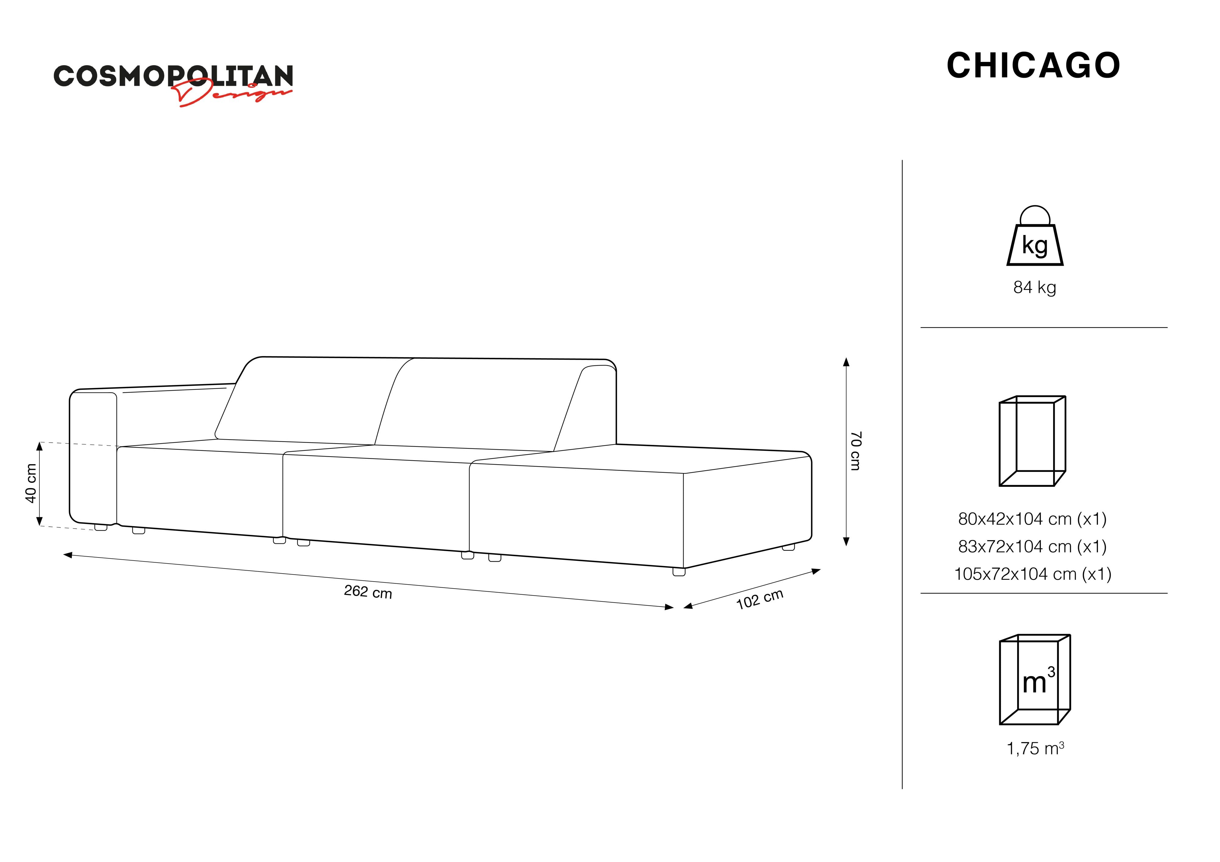 Sofa prawostronna 3-osobowa CHICAGO jasnobeżowy szenil Cosmopolitan Design    Eye on Design