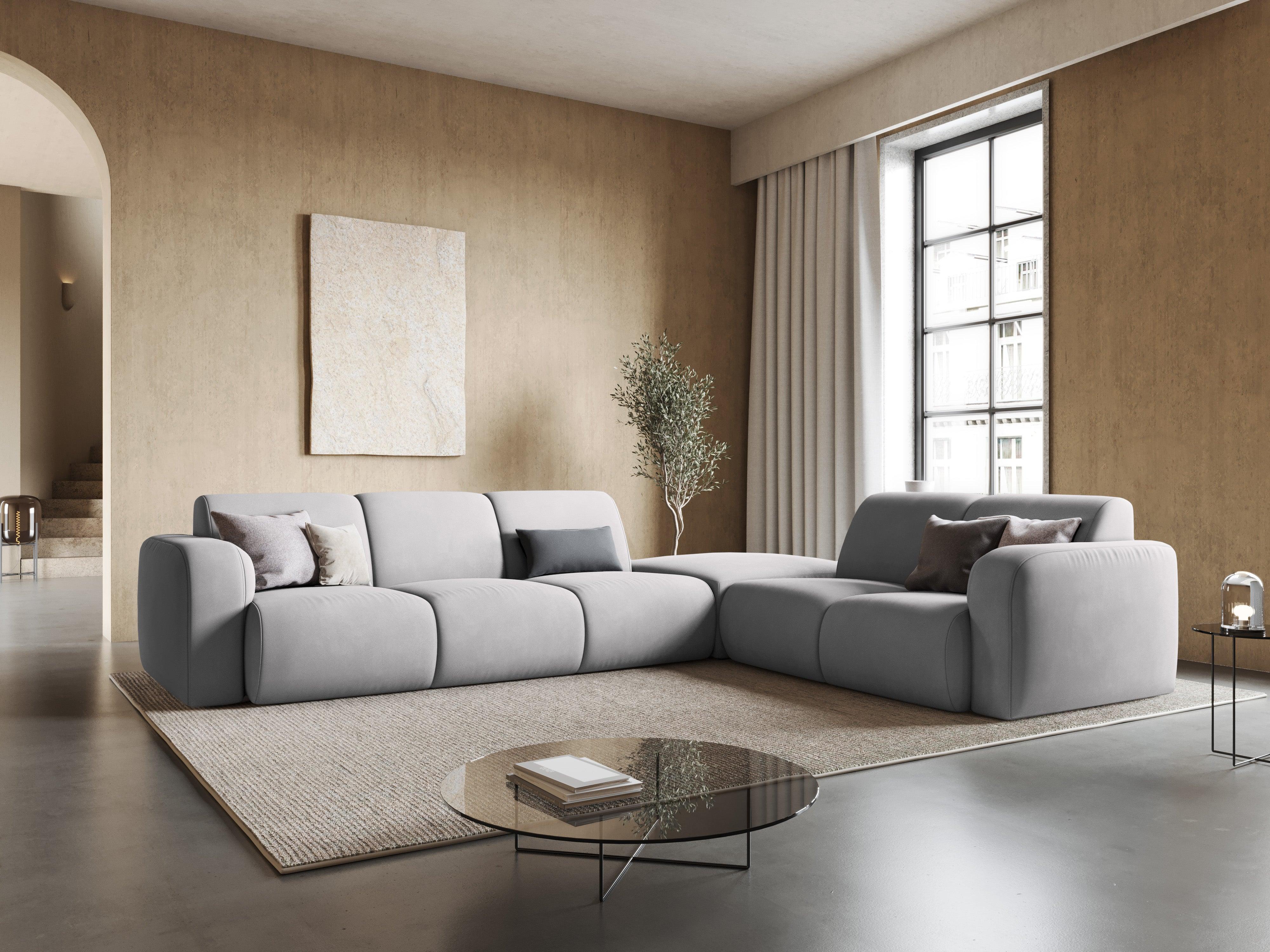 Narożnik prawostronny w tkaninie chenillowej 6-osobowy LOLA jasnoszary Windsor & Co    Eye on Design