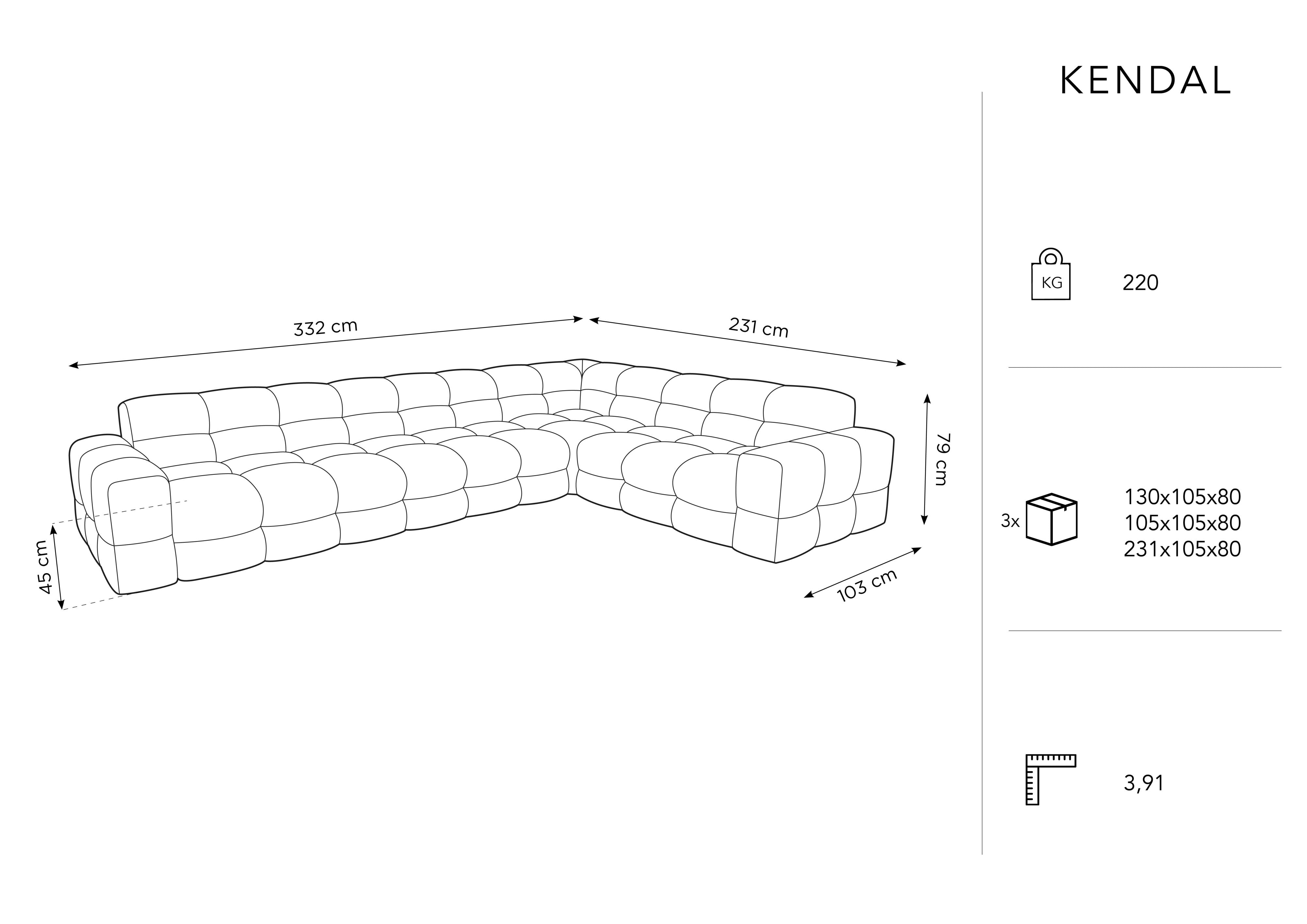 Narożnik prawostronny 6-osobowy KENDAL granatowy Micadoni    Eye on Design