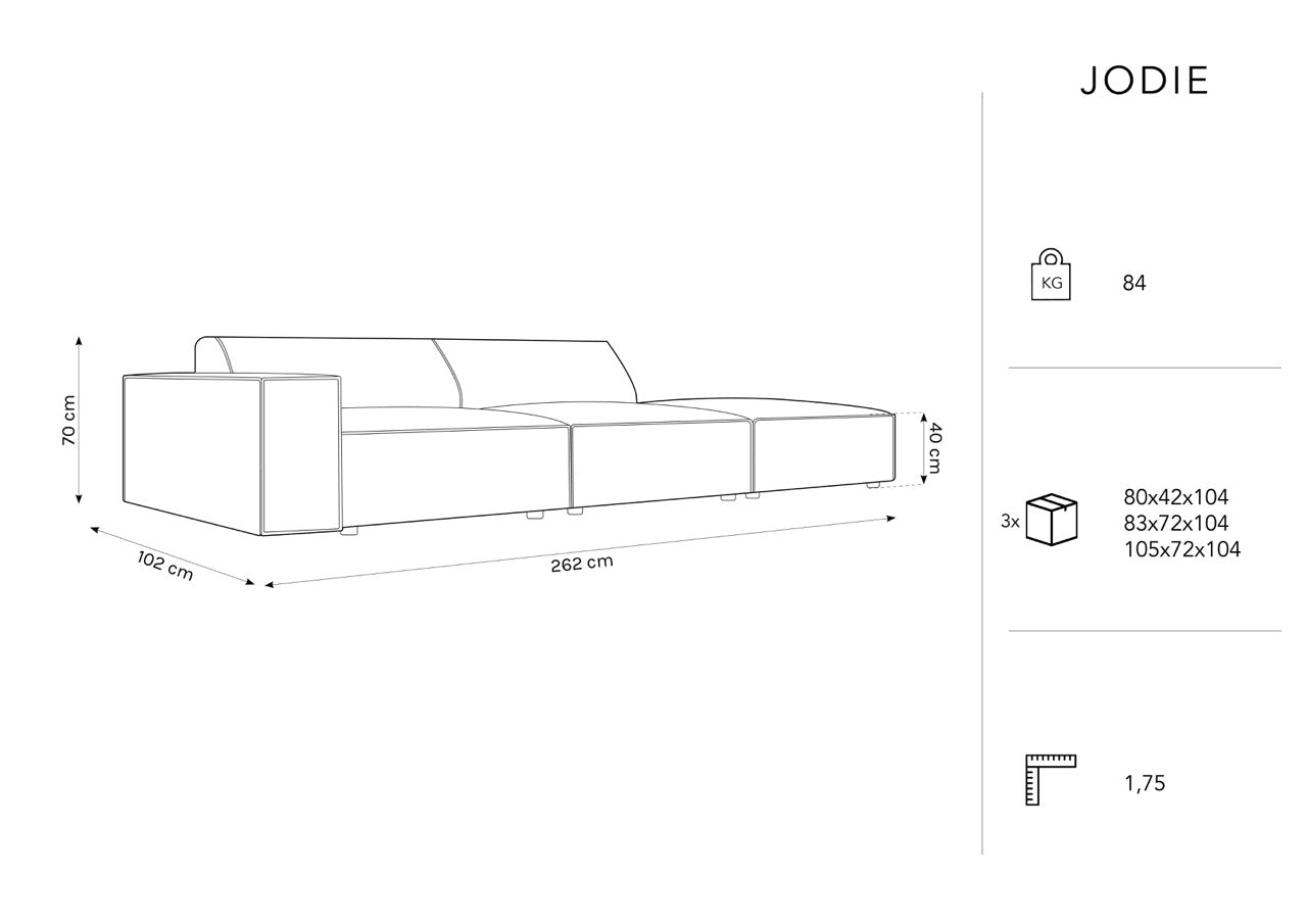 Sofa prawostronna 3-osobowa JODIE niebieski Micadoni    Eye on Design