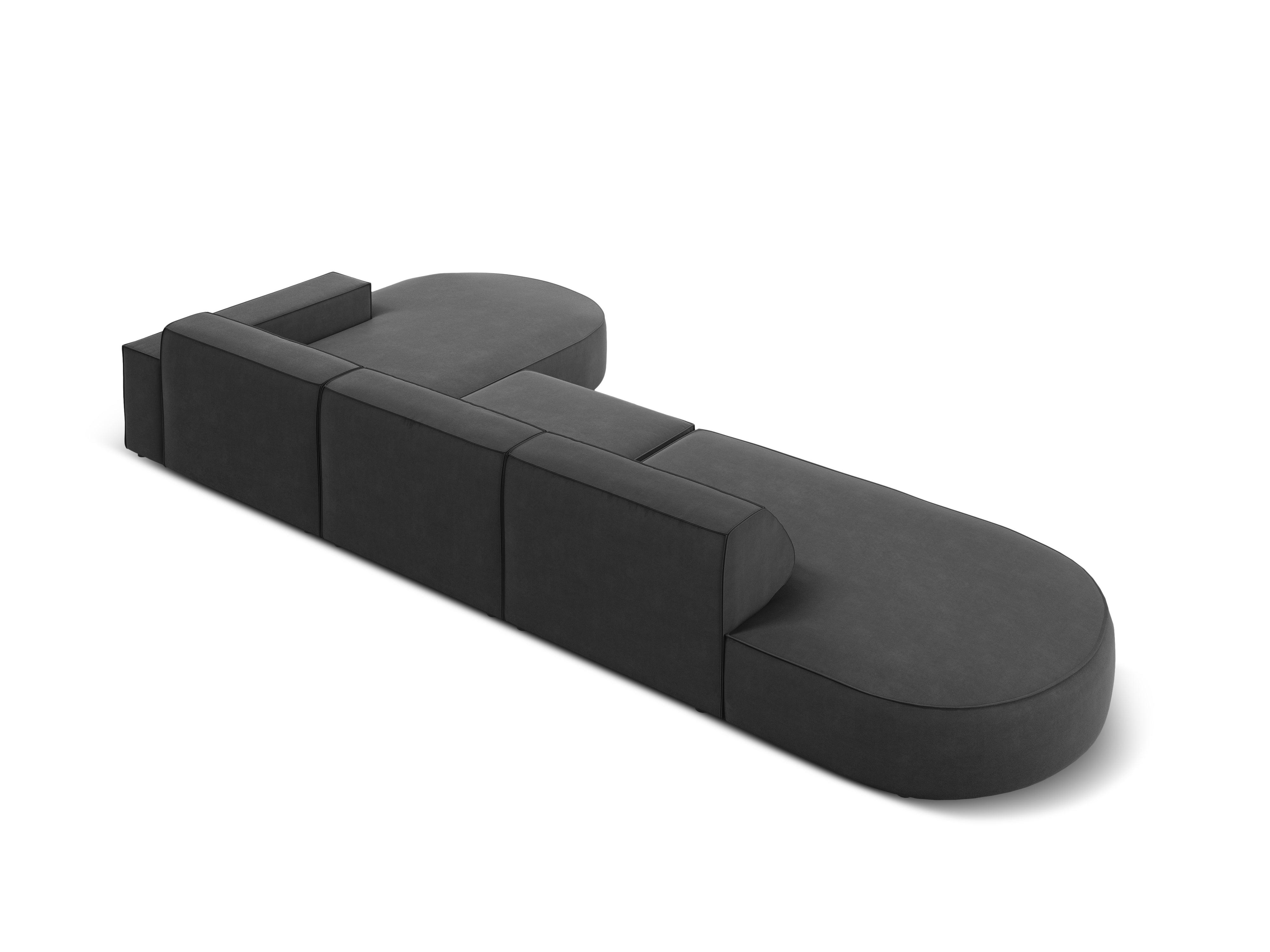 Narożnik aksamitny prawostronny 4-osobowy otwarty JODIE ciemnoszary Micadoni    Eye on Design