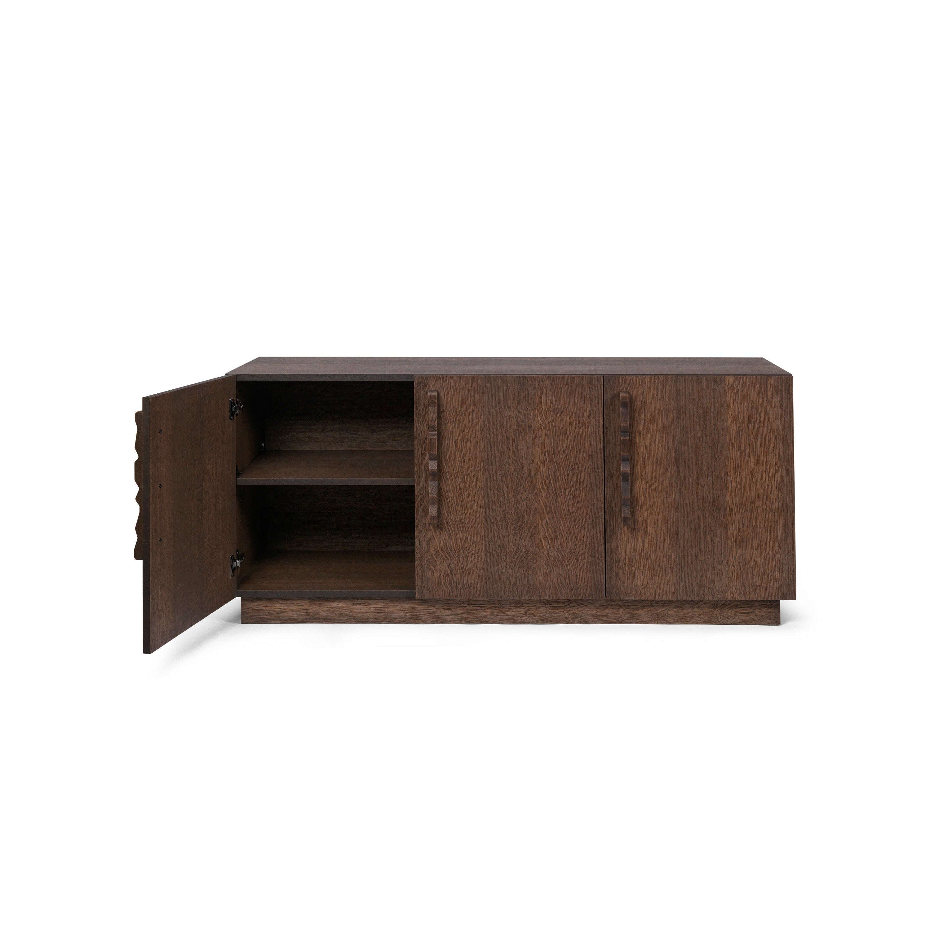 Dresser Unda was made of dark colored oak wood with FSC ™ certificate, combining solid, classic aesthetics with slightly playful, wavy handles. This combination of functionality with a little lightness creates a timeless piece of furniture that perfectly adapts to any interior.
