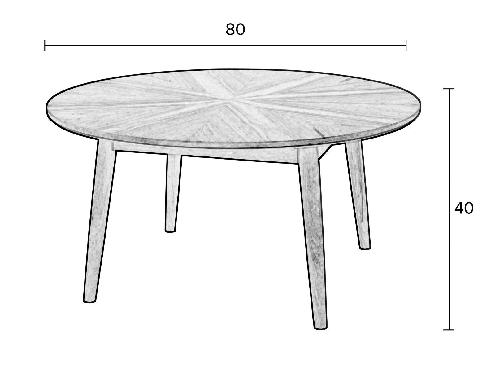 Table Fabio is a representative of a modern style, perfectly matching many contemporary apartments, such as classic, modern, loft and others. It is a low but wide table - 80 cm in diameter of the countertop provides sufficient space to freely fit coffee or tea pledge on it during social meetings. Supported on four solid, round legs reinforced under the countertop, the table is stable and durable.