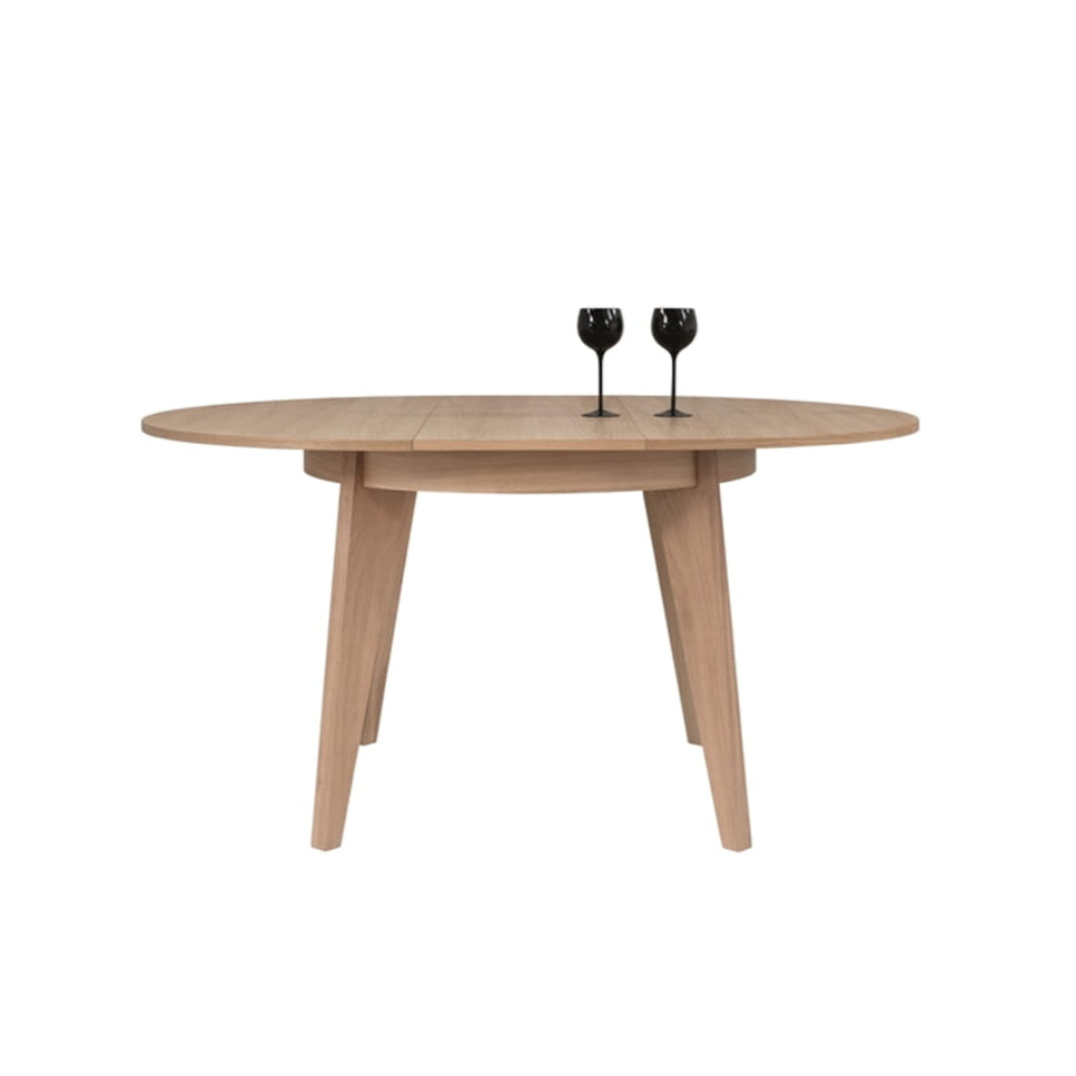 Round folding table Senales by Fameg is an ideal proposition for smaller, contemporary interiors, in which functionality and elegance plays a key role. The project by Stroog Andrzej fear is distinguished by a light, modern form and a practical distribution system - the countertop increases its diameter from 115 cm to 155 cm thanks to the rotating and tilting insert (40 cm), which is hidden under the countertop. Sleep, oblique oak wood legs add visual lightness to the furniture, and at the same time provide excellent stability.