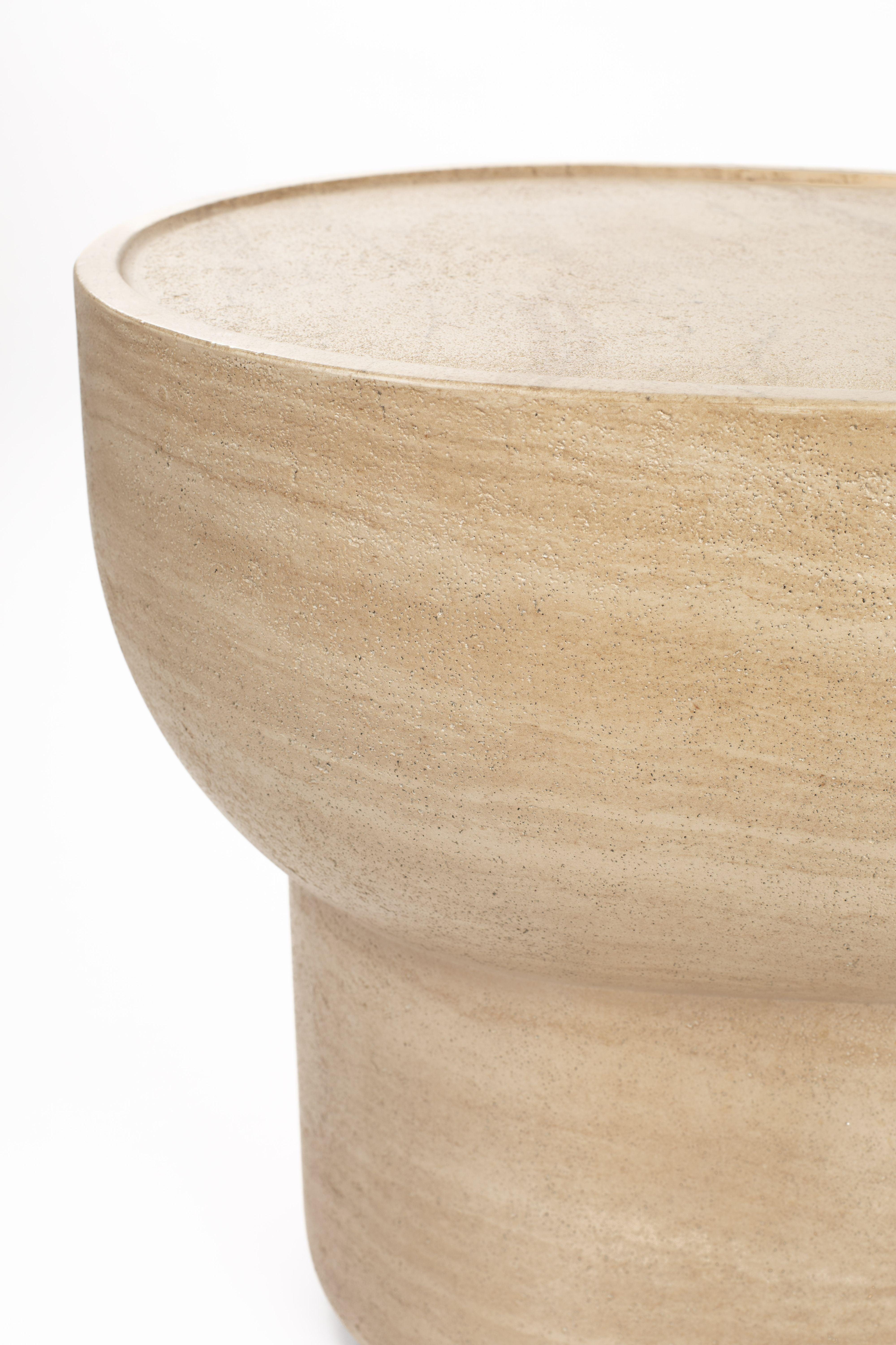 Side table Noble impresses with a symmetrical and subtle shape. Simple, clean, natural and minimalist forms of tables from the Noble collection will bring an elegant accent to any space. Each element of the table is unique by adding a little natural beauty to the interior. The table is made of concrete and painted to get the appearance of travertine.