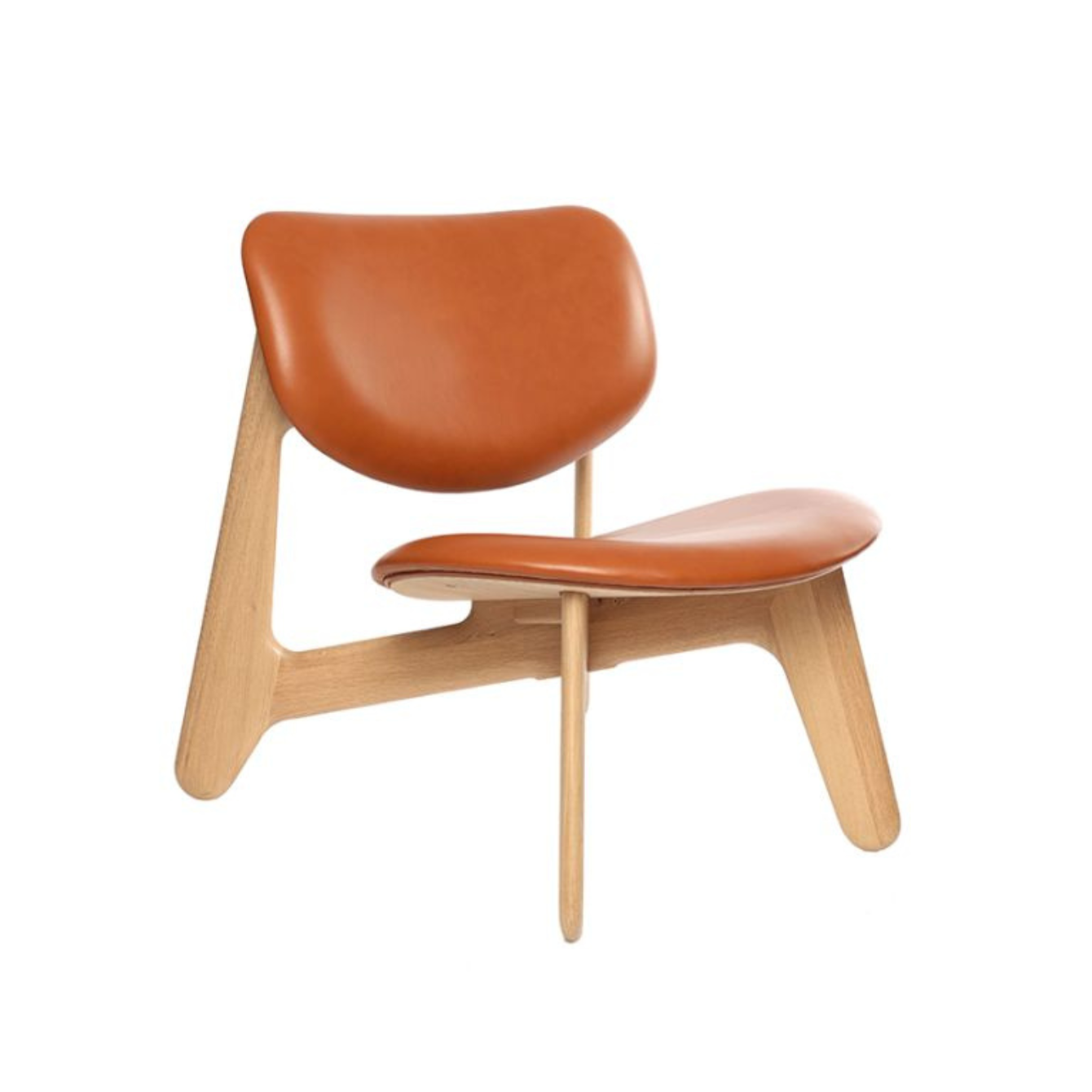 Slab chair cognac leather with an oak base